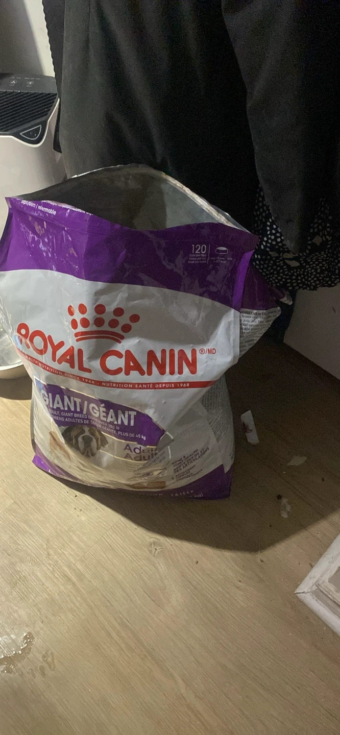 Selling a bag of Royal Canin Giant Adult dog food. It's formulated for adult dogs of giant breeds (over 45 kg).