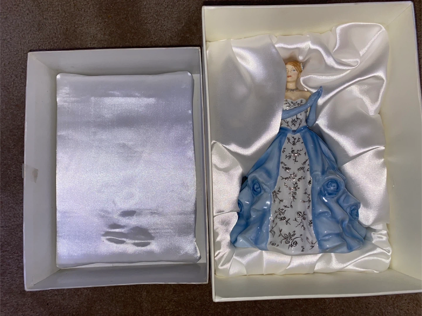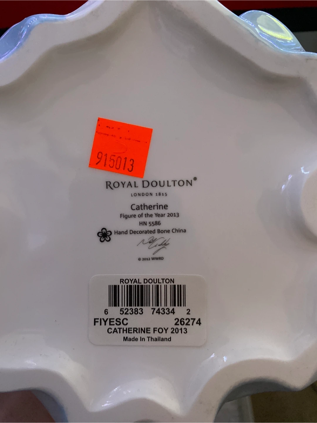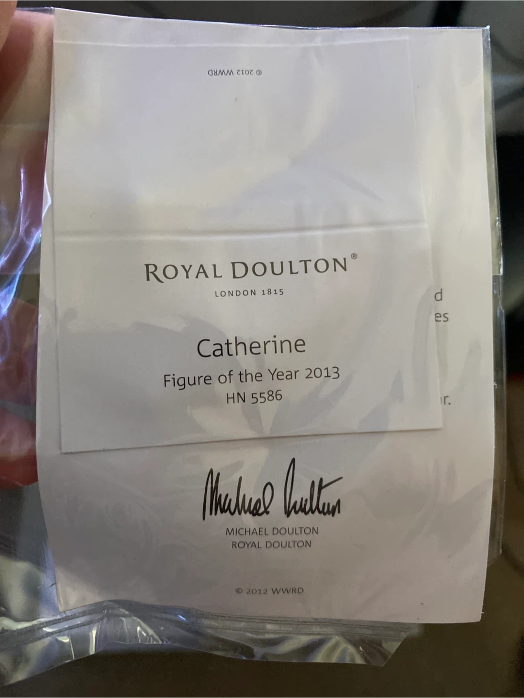Selling a Royal Doulton Catherine Figure of the Year 2013, HN 5586. It's a hand-decorated bone china figurine. Comes with the original box