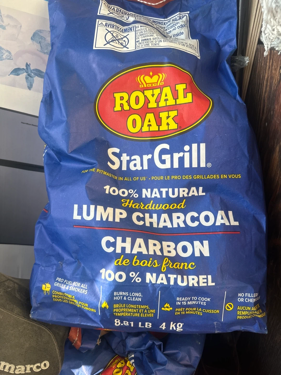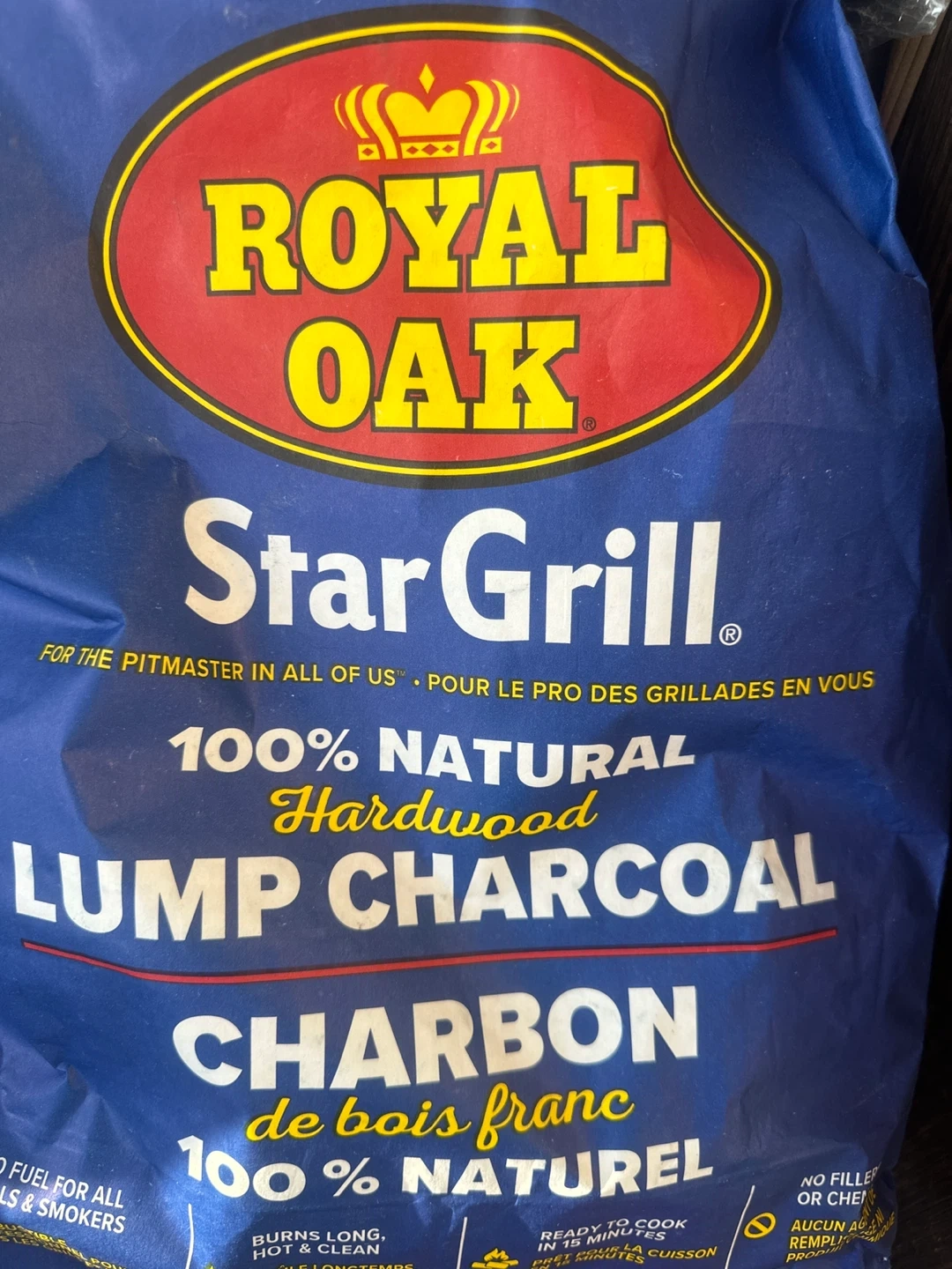 Selling a bag of Royal Oak Star Grill 100% Natural Hardwood Lump Charcoal. It's a 4 kg bag, perfect for grilling and smoking. Burns long, hot, and clean, and is ready to cook in 15 minutes!