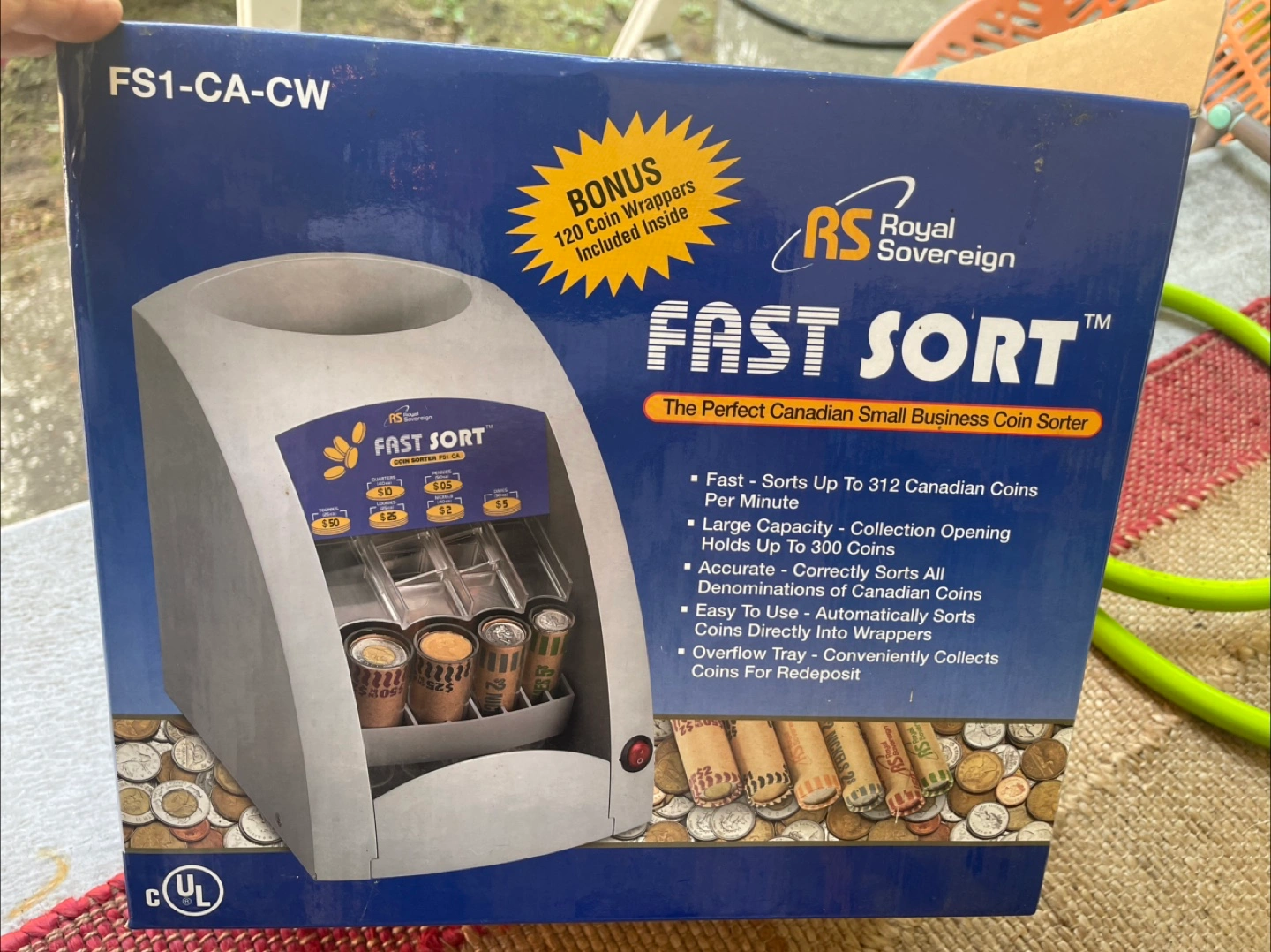 Selling a Royal Sovereign FAST SORT coin sorter, model FS1-CA-CW. It's brand new and comes with the box and manual! It can sort up to 312 Canadian coins per minute and holds up to 300 coins. Also includes coin wrappers. Great for small business owners!