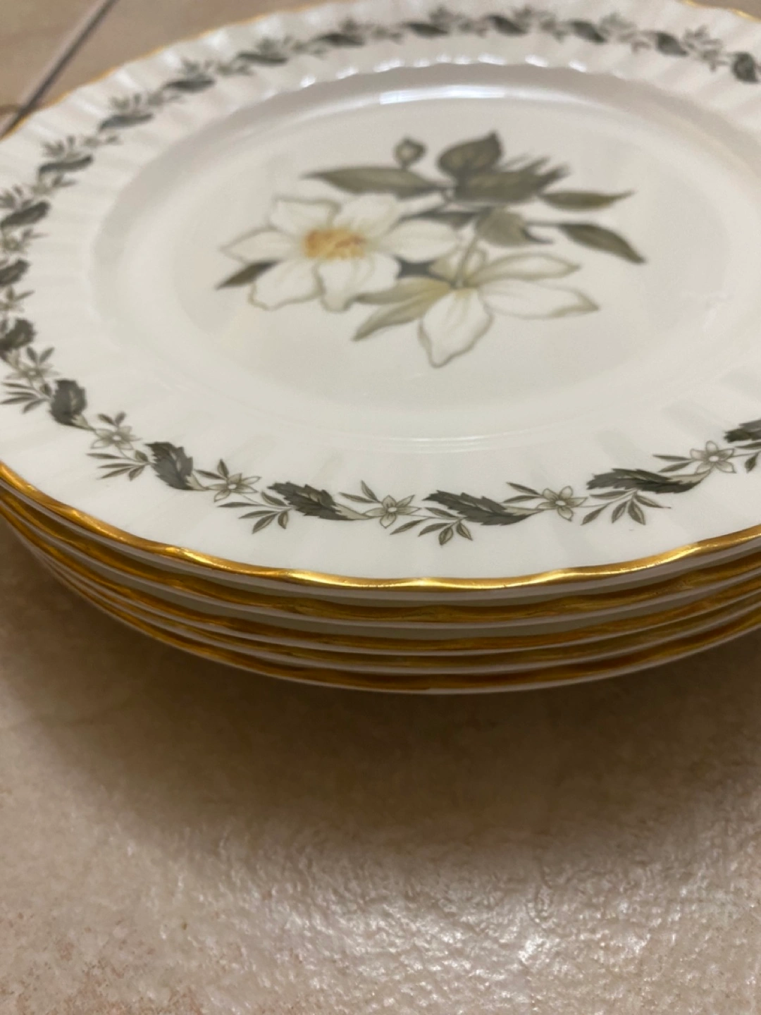 Selling a set of 6 Royal Worcester Engadine plates! These are made in England and feature a lovely floral design with a gold trim. These were bought in the UK. Never used excellent condition. Great for guests