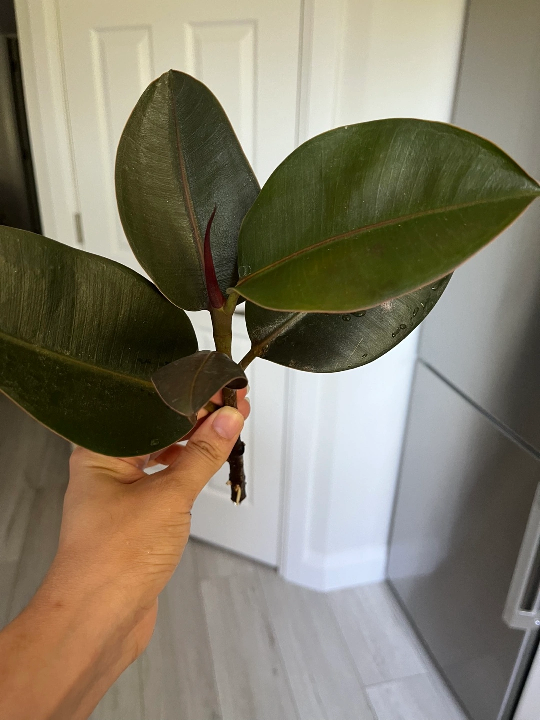 Selling a healthy rubber plant cutting. It has beautiful dark green leaves and is ready to be planted!