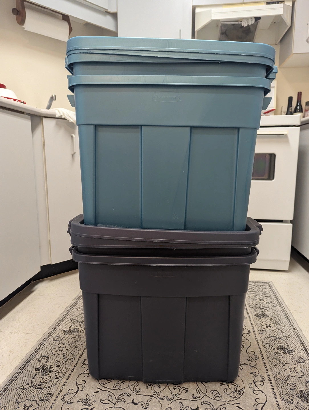 Four Rubbermaid Storage Bins available. Like new in condition, from storage unit. Approximately 20 inches by 15 inches and 15 inches deep. Come with matching lids. Selling price is for 4 pieces with lids. Sold as a single lot only.
