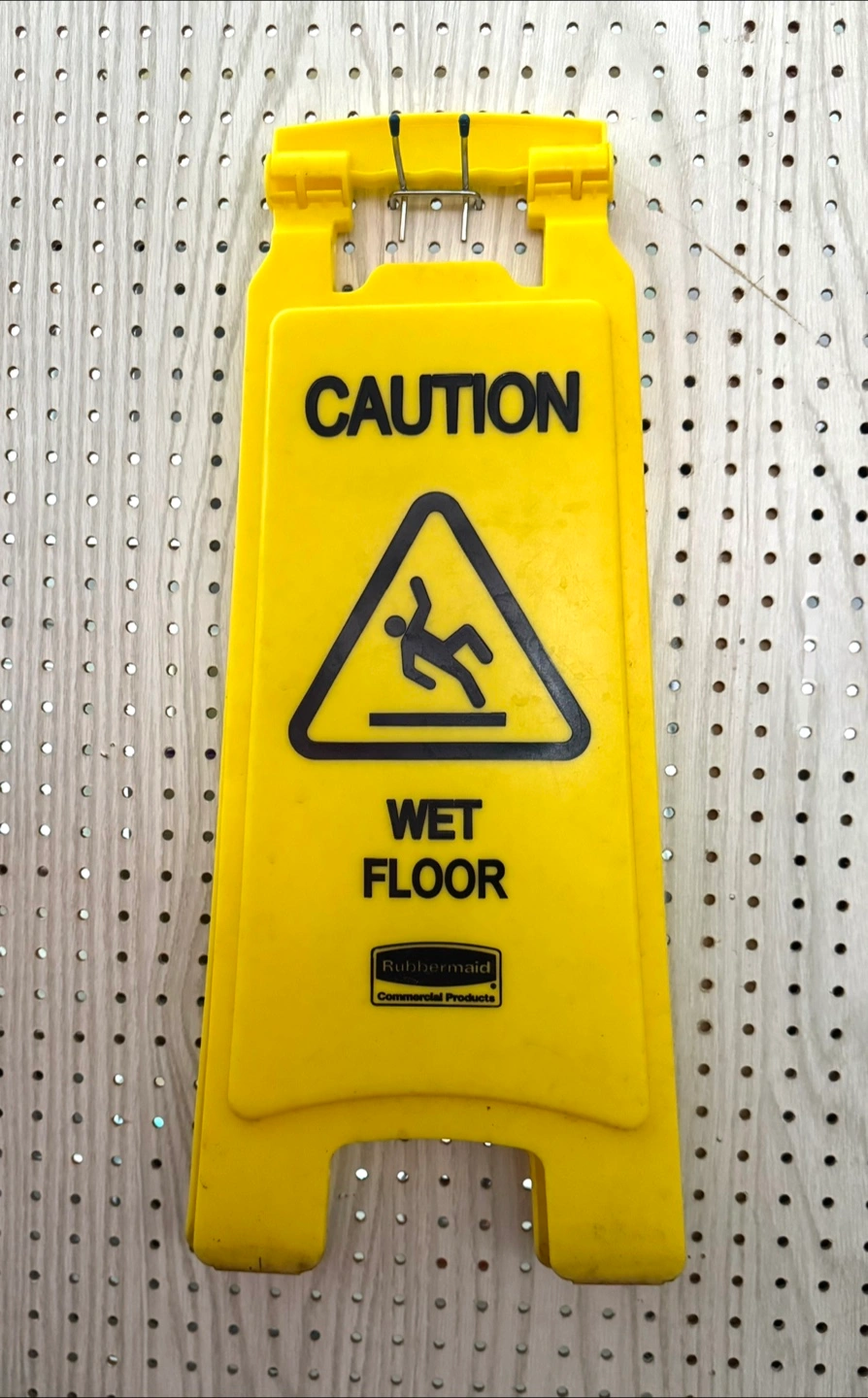 Selling a Rubbermaid yellow caution sign for wet floors. It's in good condition and ready to help keep folks safe from slips!