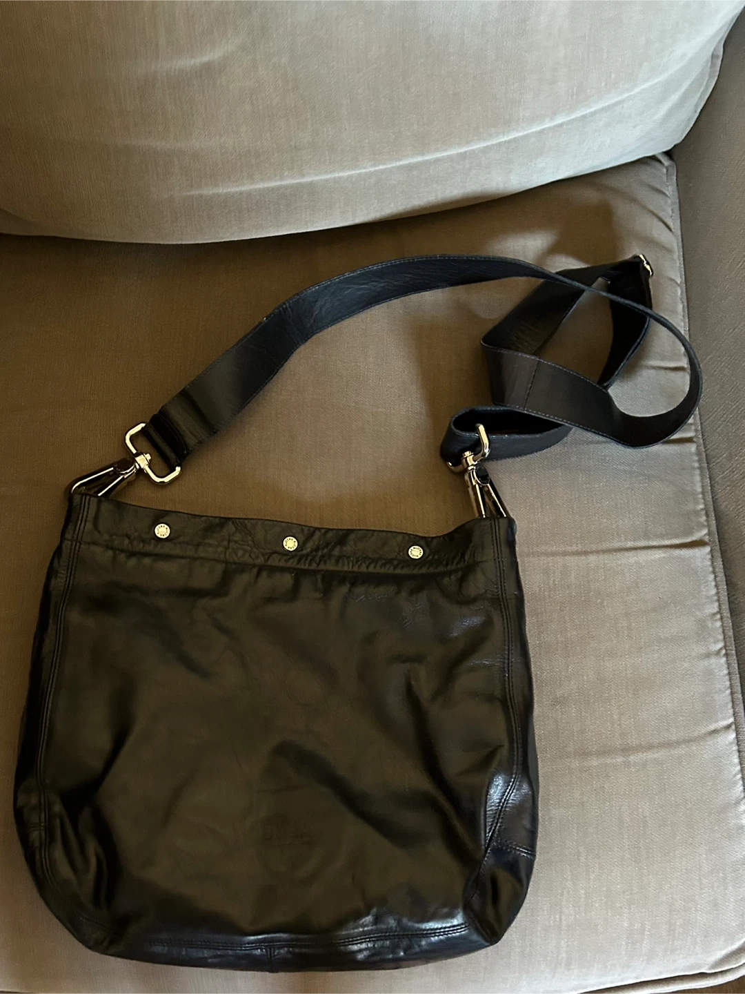 Selling a Rudsak black leather crossbody bag. This stylish purse is perfect for everyday use. It comes with a detachable strap for versatility. The bag is in great condition and ready for a new home. It has lots of storage with sleeves for phone and other items, a middle section with zipper and 2 other sections.