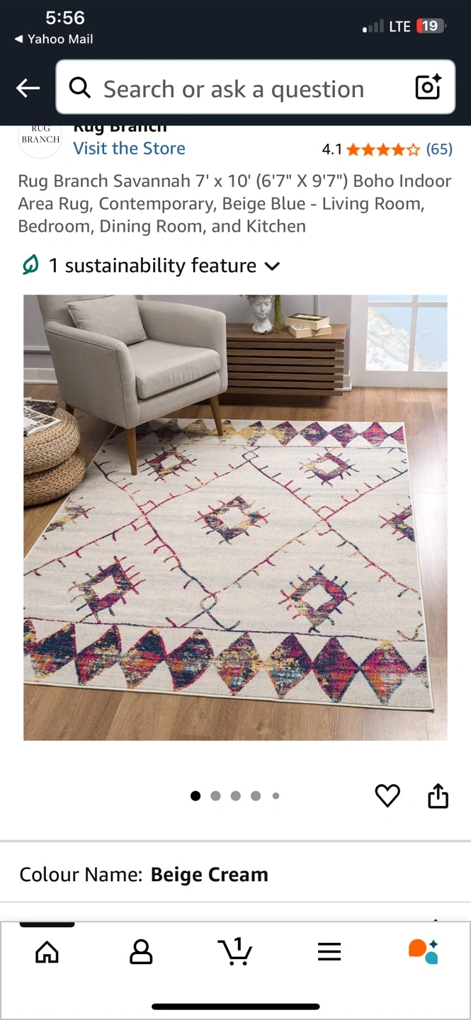 Selling a Rug Branch Savannah area rug, perfect for adding a boho touch to your living room, bedroom, or dining room! The rug is 7' x 10' (6'7" x 9'7") and features a contemporary design in beige and cream colours