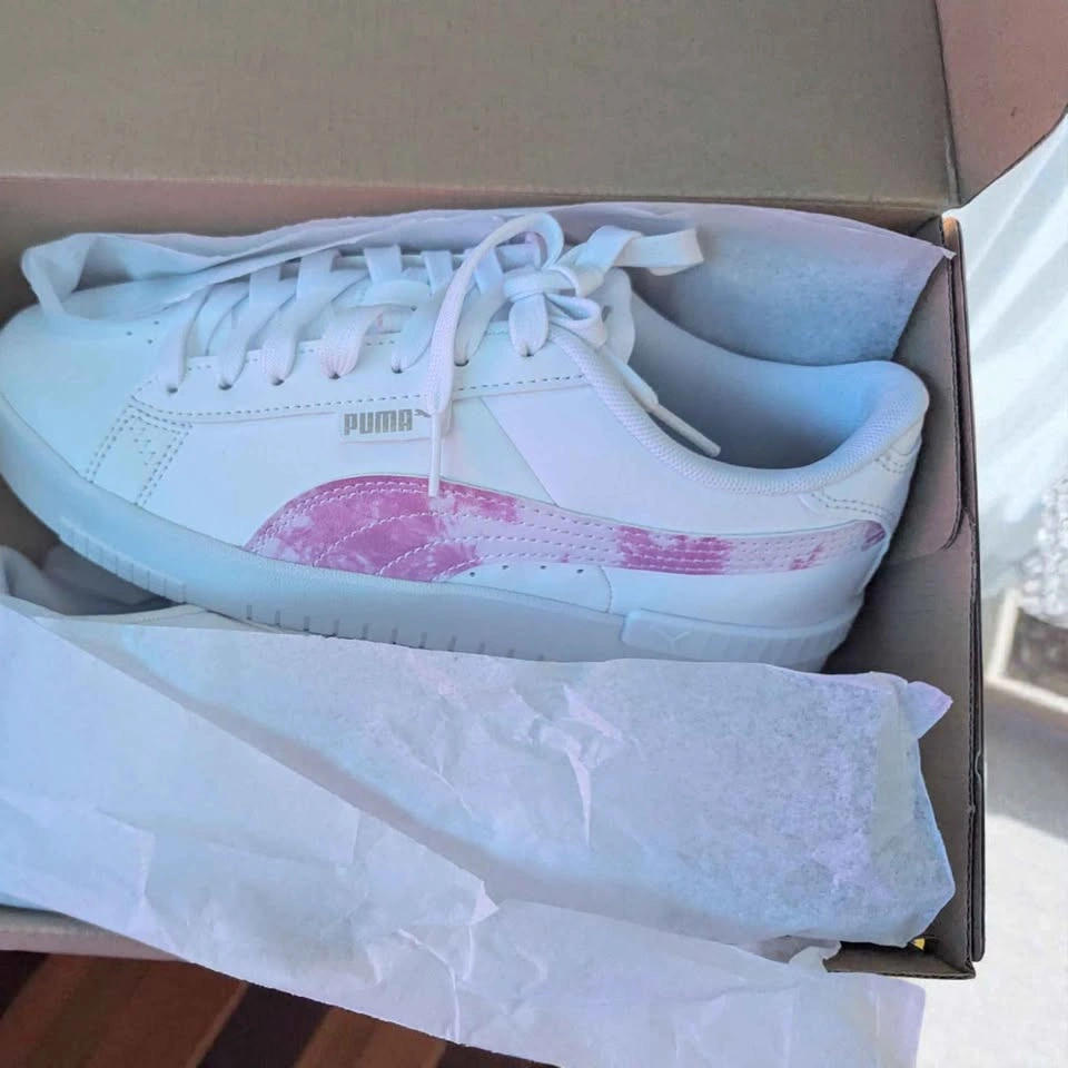 Size: 6 Tween These Puma sneakers combine everyday comfort with standout style. A fresh take on the classic low-top sneaker silhouette, this pair features a watercolor-style Formstrip detail on the sides that makes them unique yet versatile. Designed in clean white with soft accents, they balance sporty function with chic flair — perfect for school outfits, casual weekends, or play. ✨ Puma — White Tween Size 6 ✨ • White sneakers with watercolor side stripe Formstrip detailing • Casual low-top silhouette with round toe • Lace-up fastening with logo patch at the tongue • Branded insole for all-day comfort • Durable rubber sole in matching white for grip and longevity • Composition: 100% Polyamide upper, 100% Fabric lining, 100% Rubber sole • Great for everyday wear, school shoes, sports, or casual outfits ➝ Available by appointment only Check out my other ads ✔️ I have a lot for sale including home décor, rugs, and comforters.