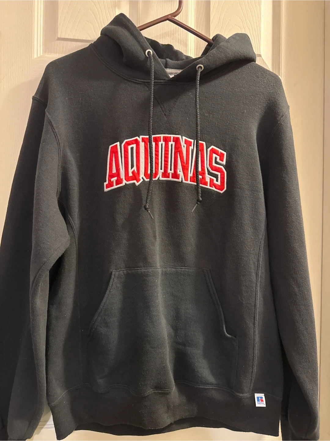 Selling a Russell Athletic hoodie with the Aquinas logo. It's a size medium and in great condition! Perfect for staying cozy.