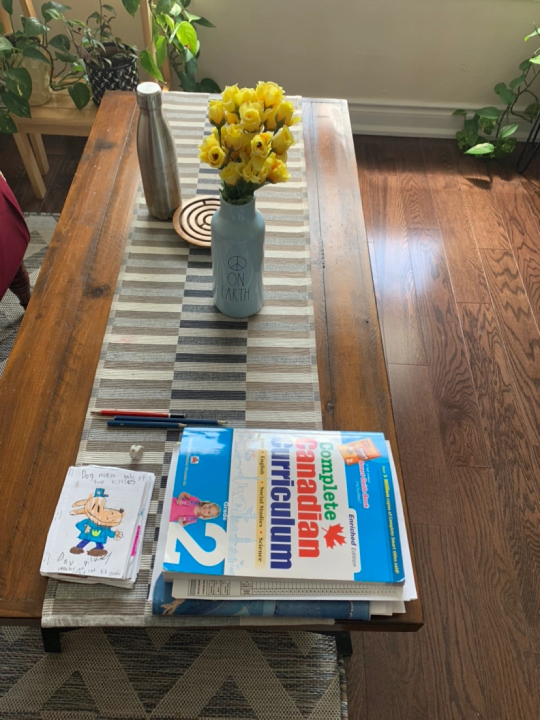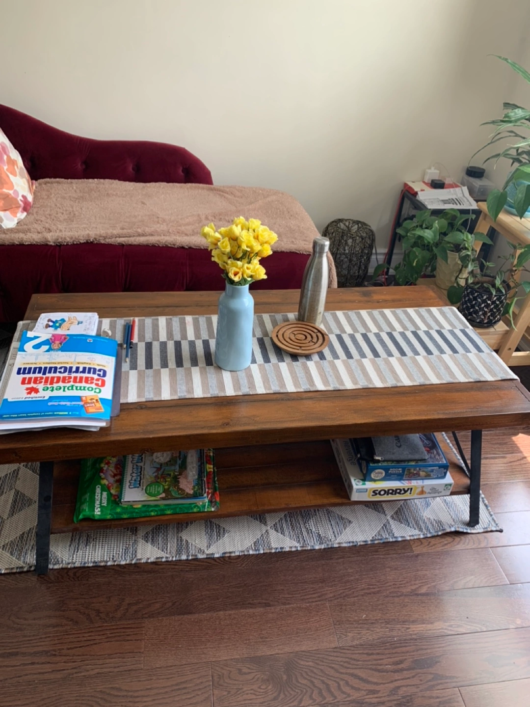 Spacious rectangular coffee table. Features a lower shelf for storage. Dark brown wood top and black metal legs. Good condition. Bought from Wayfair, in a very good condition