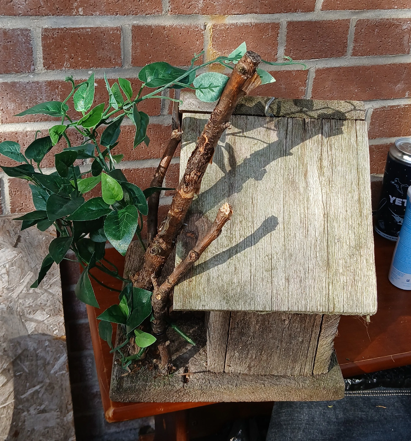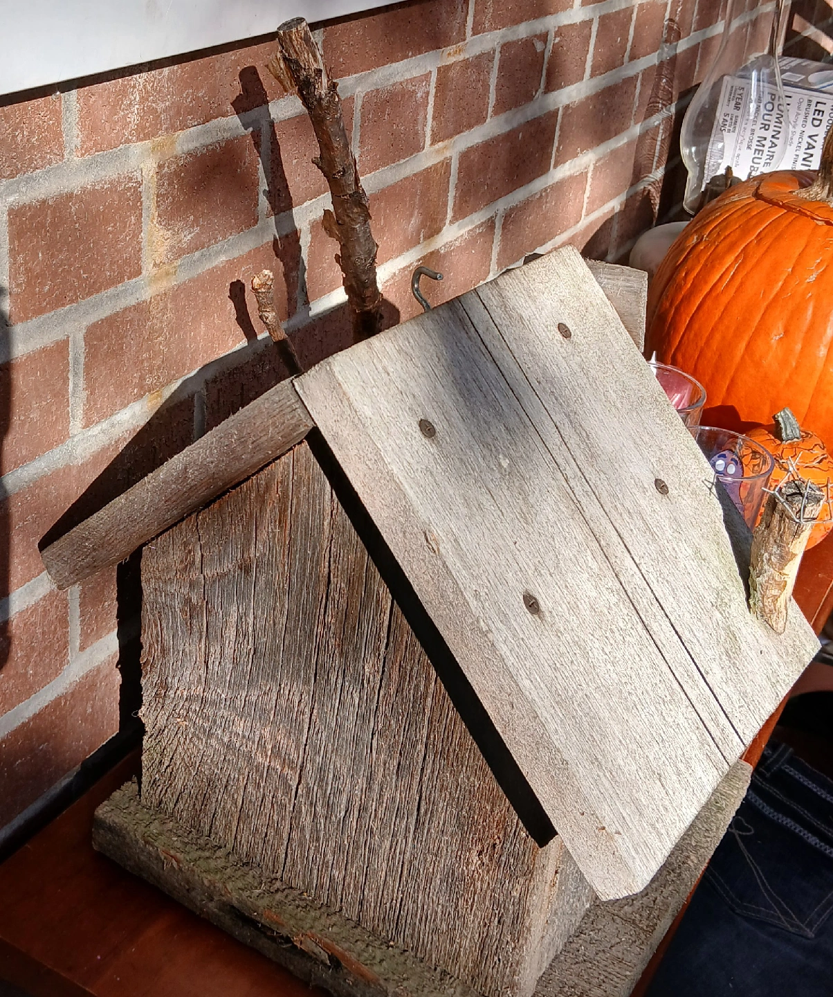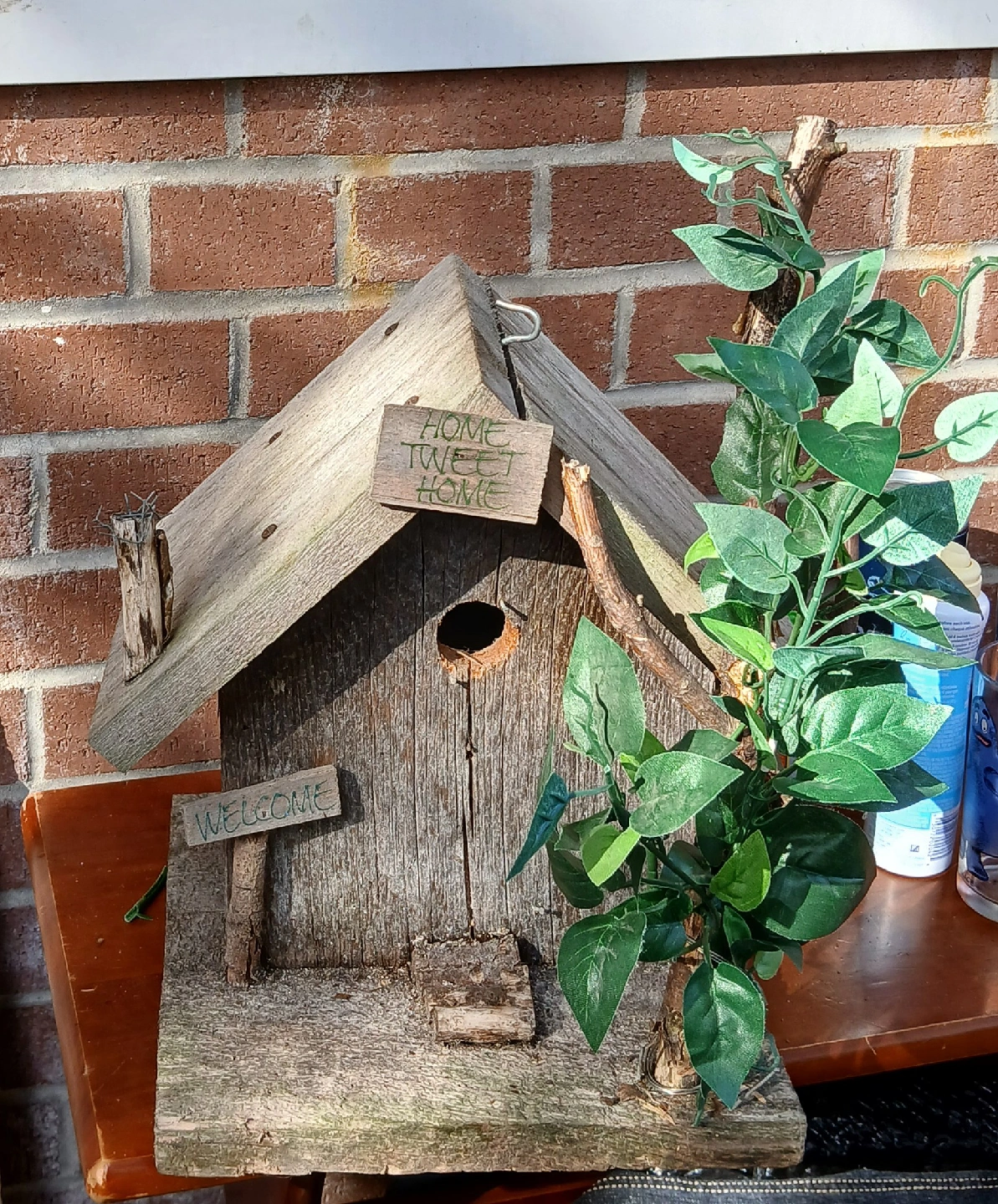 Charming rustic birdhouse with a weathered look. Features a 'Home Tweet Home' sign and a 'Welcome' sign. A unique addition to any garden or outdoor space