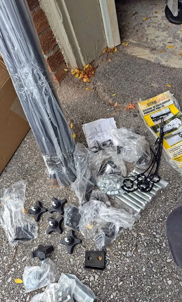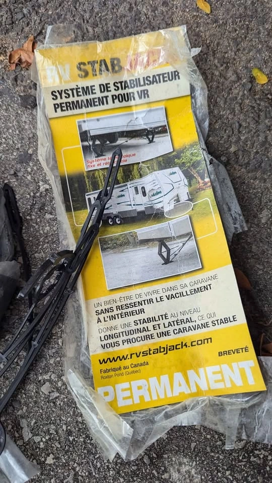 Includes everything here Brand new (open box) RV stabilizer jack system, complete with adjustable arms, brackets, bolts, and instructions. Helps eliminate side-to-side and front-to-back movement when parked — keeps your camper solid and steady. Fits most fifth wheels, travel trailers, and motorhomes All hardware included and manual Quick install with basic tools Ideal for long-term camping or seasonal setups