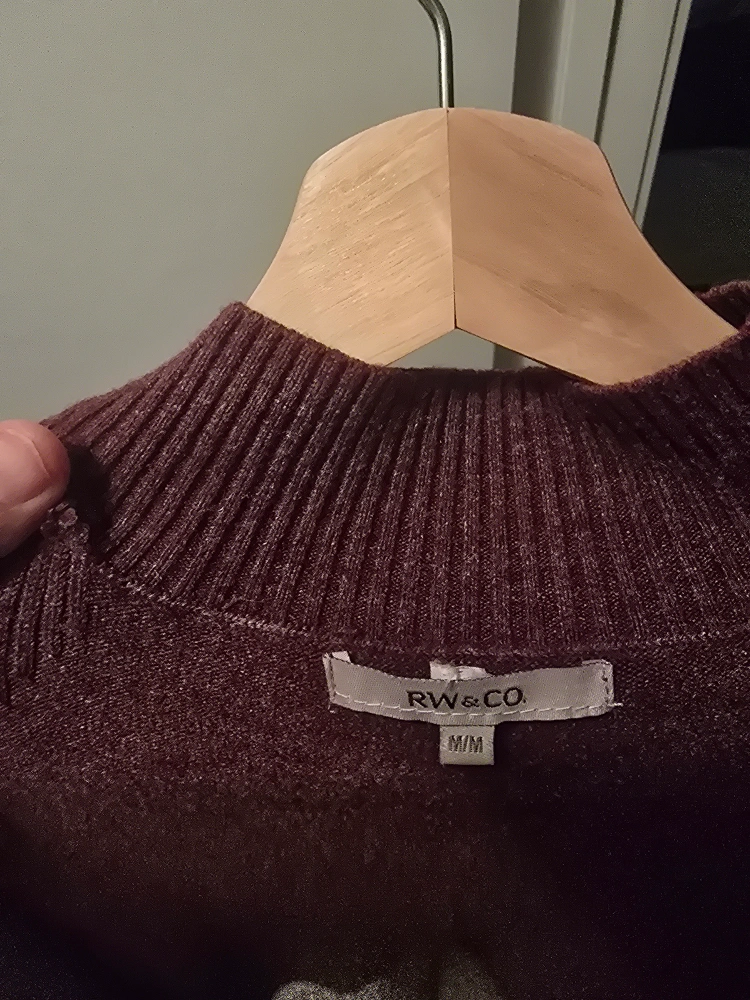 Selling a RW&CO. sweater in size M/M. It's a lovely burgundy colour and in great condition. Perfect for the cooler weather!