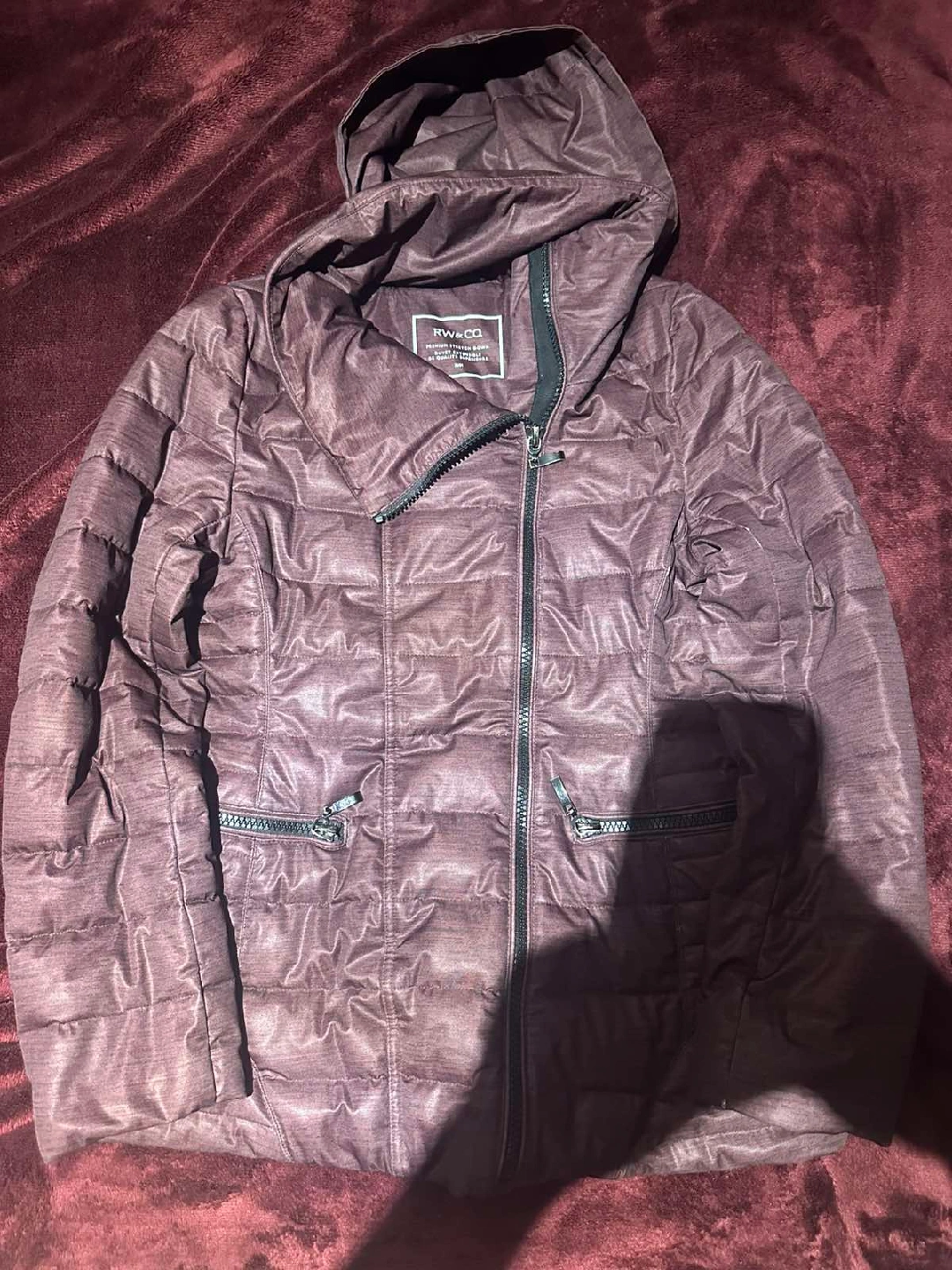 RW & CO. puffer jacket in great condition! It's a stylish and cozy jacket perfect for chilly days. The jacket features a hood and a zipper closure