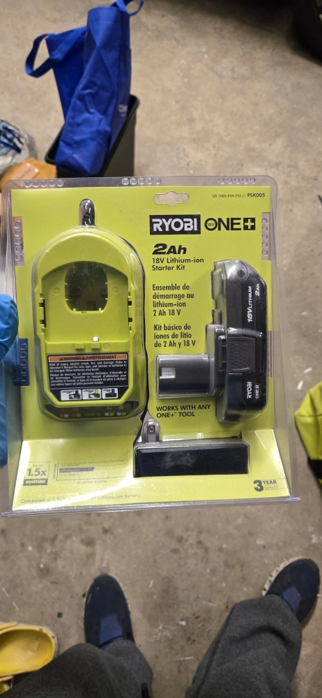 New in box RYOBI 18V ONE+ 2Ah Lithium-ion Starter Kit. Includes battery and charger. Works with any ONE+ tool.