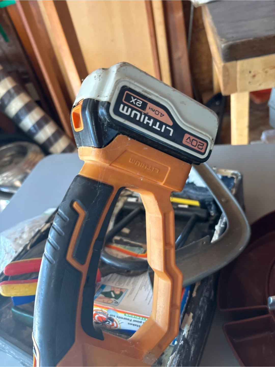 I'm selling a Ryobi 20V lithium cordless grass trimmer. It's in good condition and ready to tackle your lawn! It uses a 20V 4.0Ah battery.