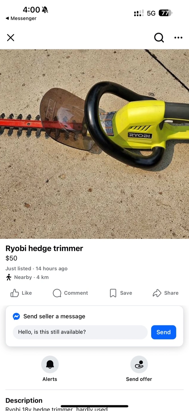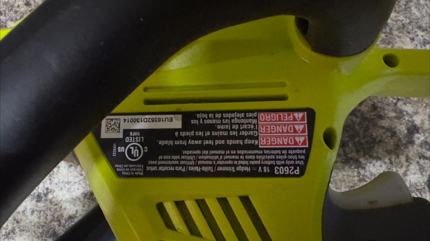 Selling a Ryobi hedge trimmer. It's in great shape and ready to help you keep your yard looking tidy. It's an 18V model. Perfect for small to medium-sized hedges and shrubs!