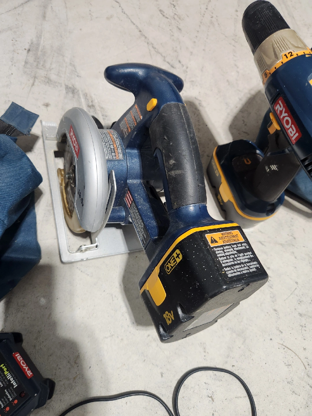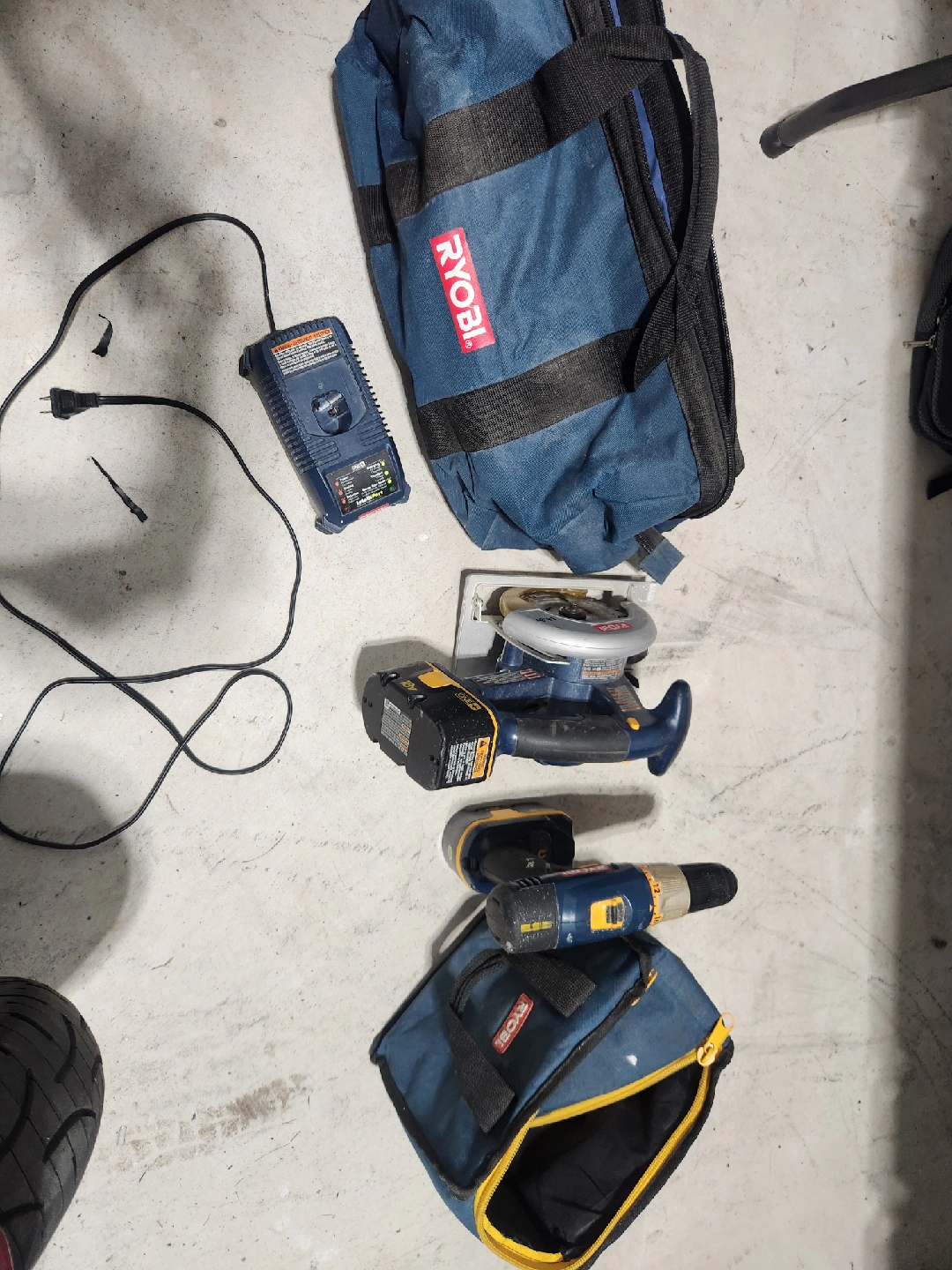 Selling a Ryobi ONE+ set that includes a cordless drill, a circular saw, a charger, and a bag. Great for anyone looking to start their tool collection or add to it! Charger is an Intelllport.