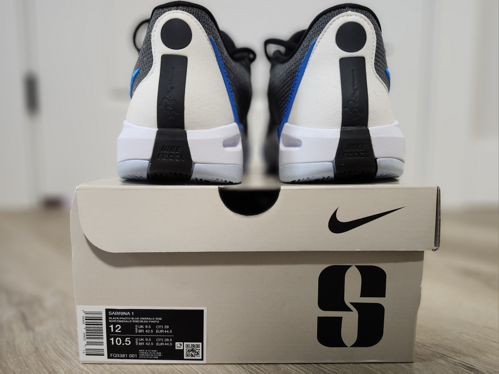 US Men's size 10.5/ US Women's size 12 Sabrina 1 basketball shoes in a black, white, and blue colourway. They come with the original box. This is brand new/ never worn and 100% authentic. Selling for $220.00 CAD (obo). I will accept offers. Meet/ pick-up only at 28B Malta Street, St. John's.