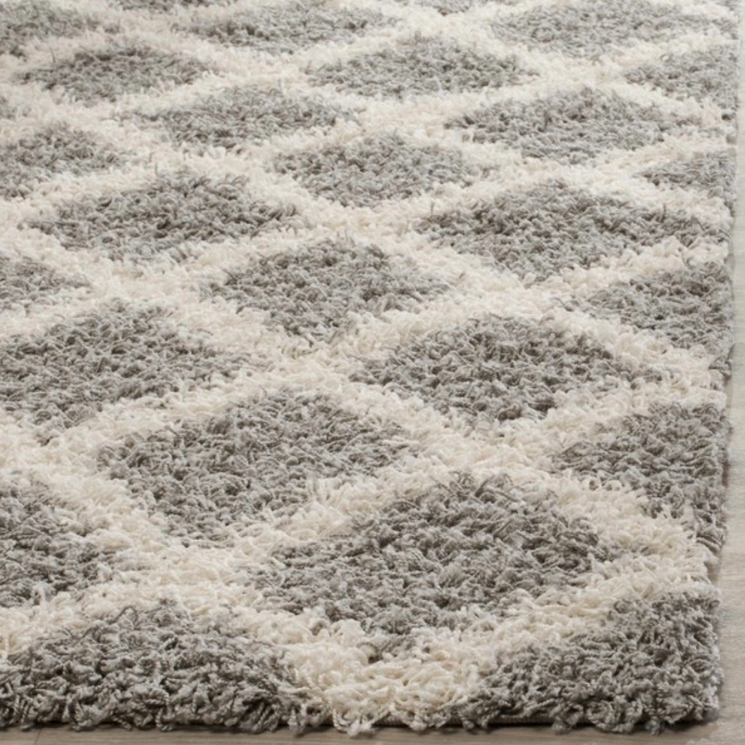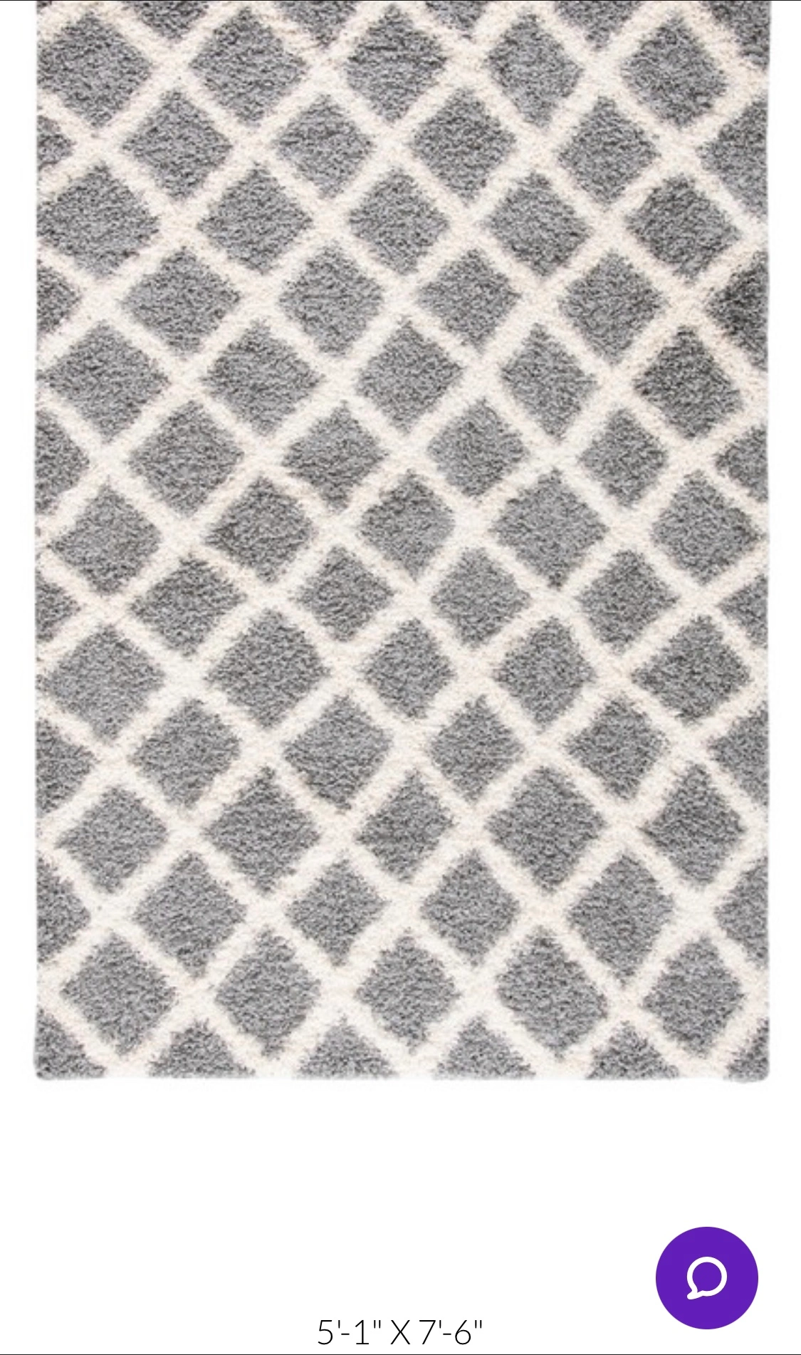 EUC Savafieh shag rug grey and ivory with a diamond pattern 5'-1" x 7'-6" Pickup only *Check out my other ads*