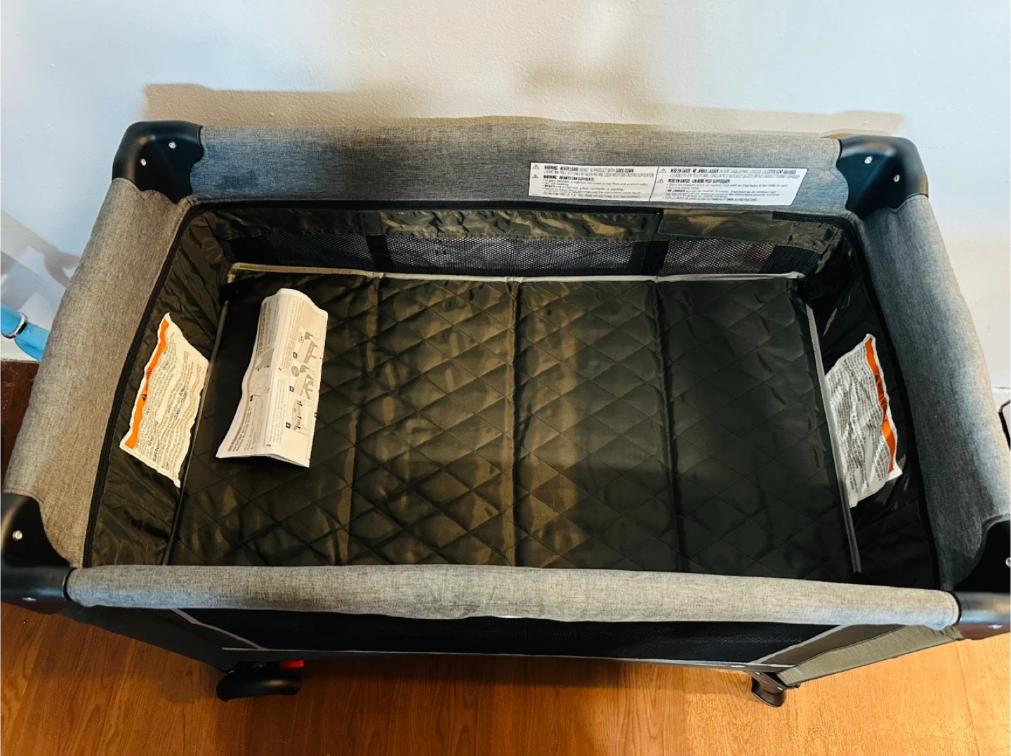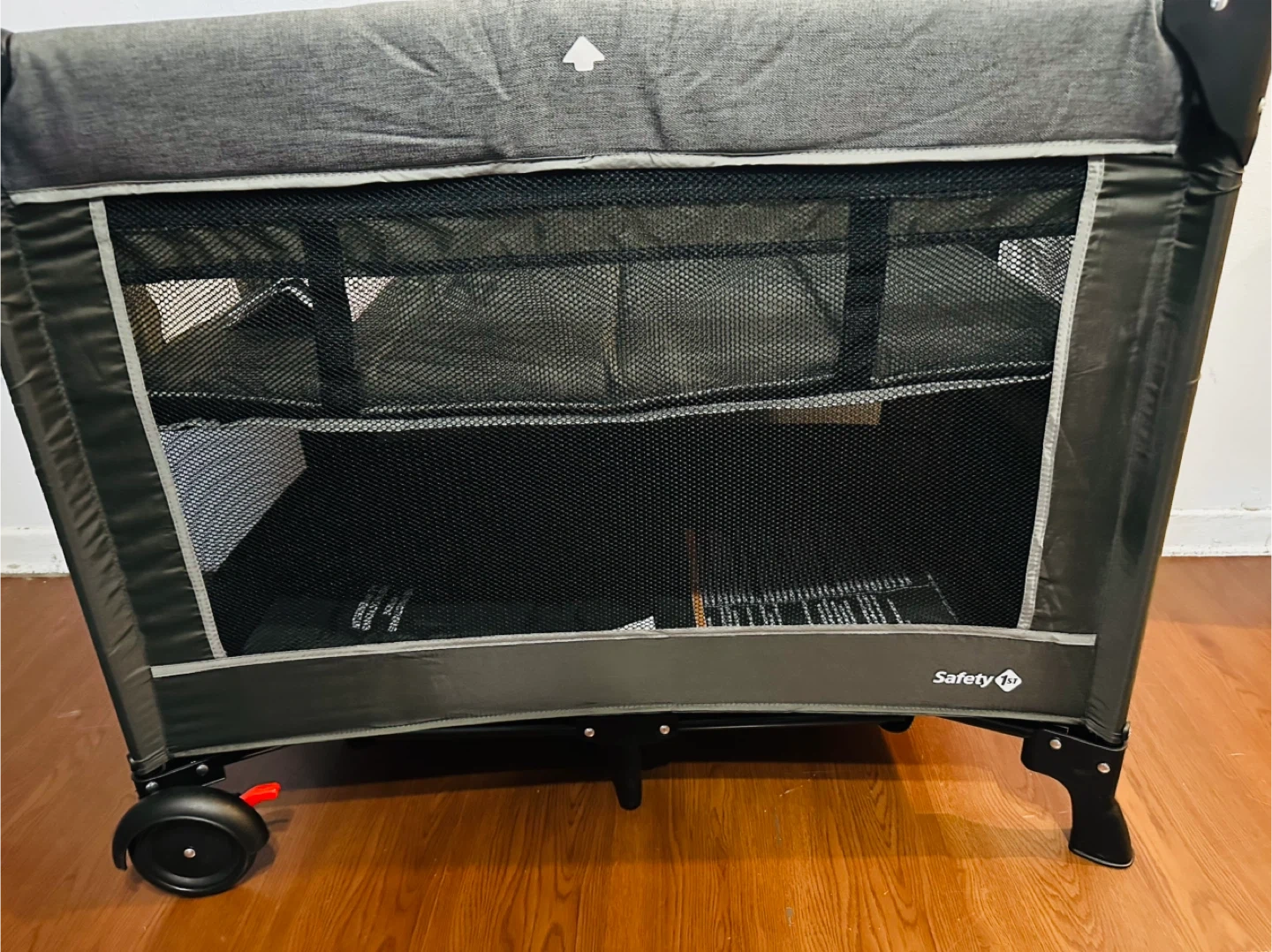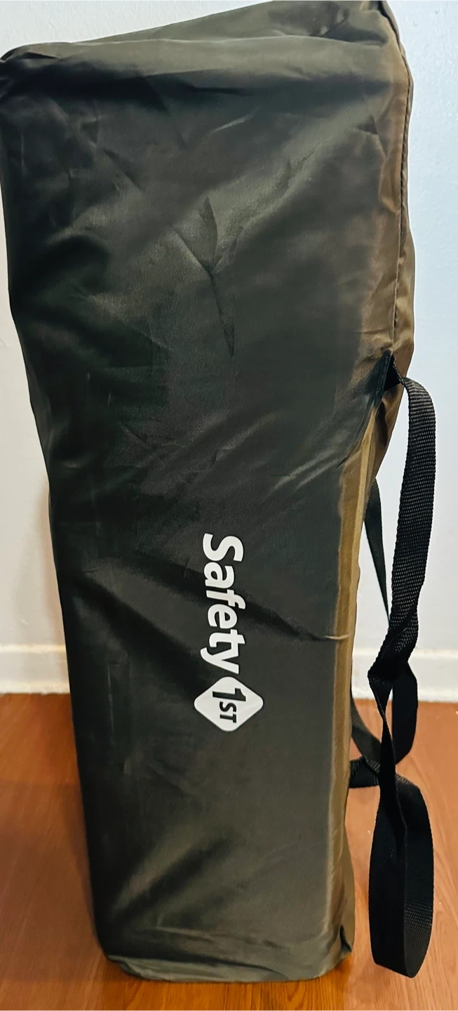 Selling a Safety 1st travel playard. It's perfect for travel or keeping at grandma's place. The playard is grey and comes with a carrying bag for easy transport and storage. It also includes the instruction manual.