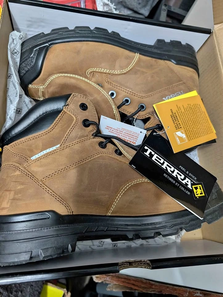 These are normally $250+tax new. Terra size 11 brown - new $100. STC size 10.5W - black - new $100