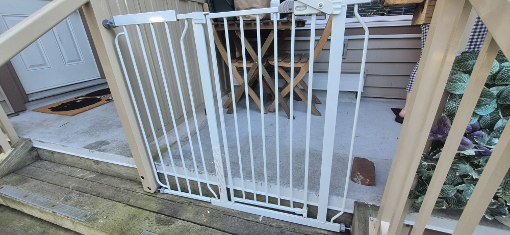 Selling a safety gate for indoor or outdoor . It's in good condition and ready to keep your little one safe!. No holes, tools or additional hardware nedeed to install it