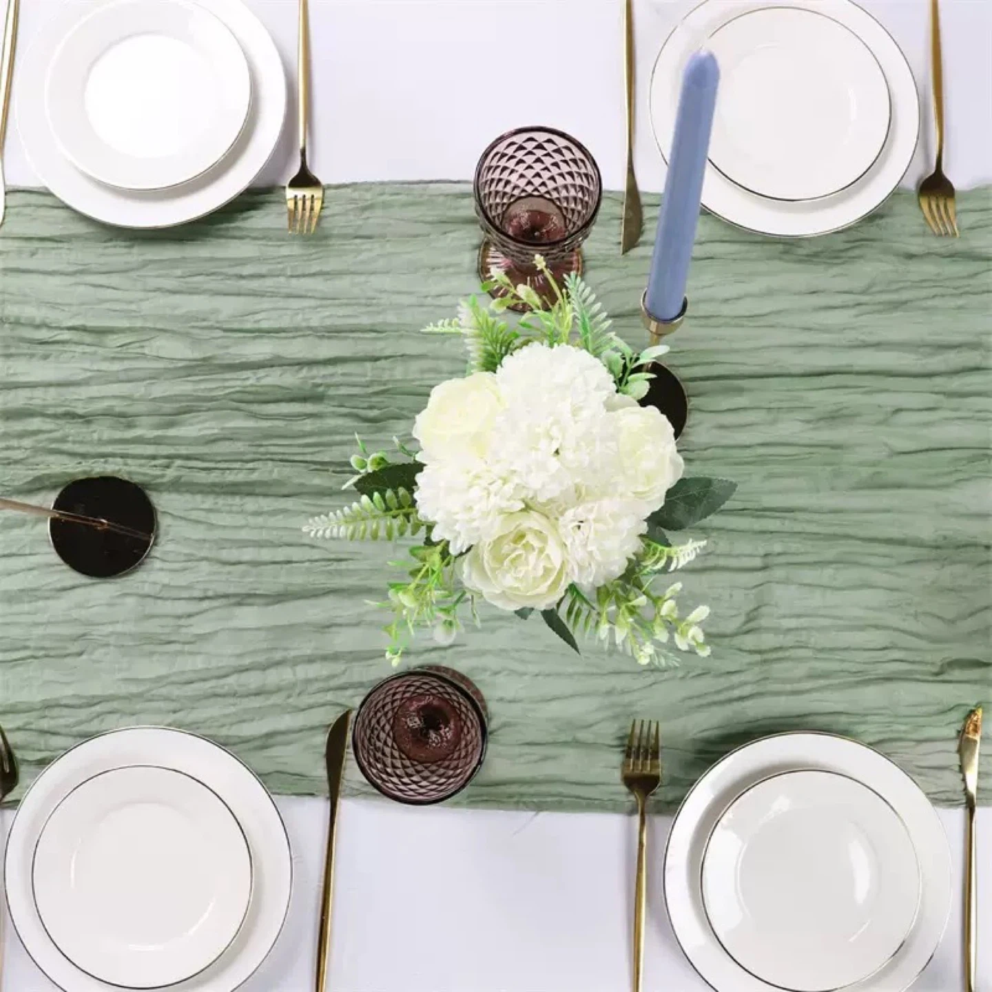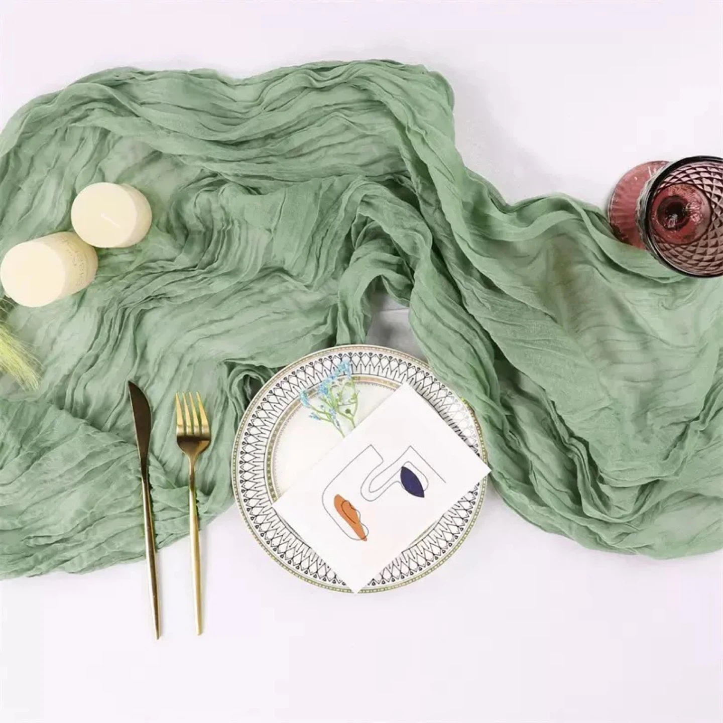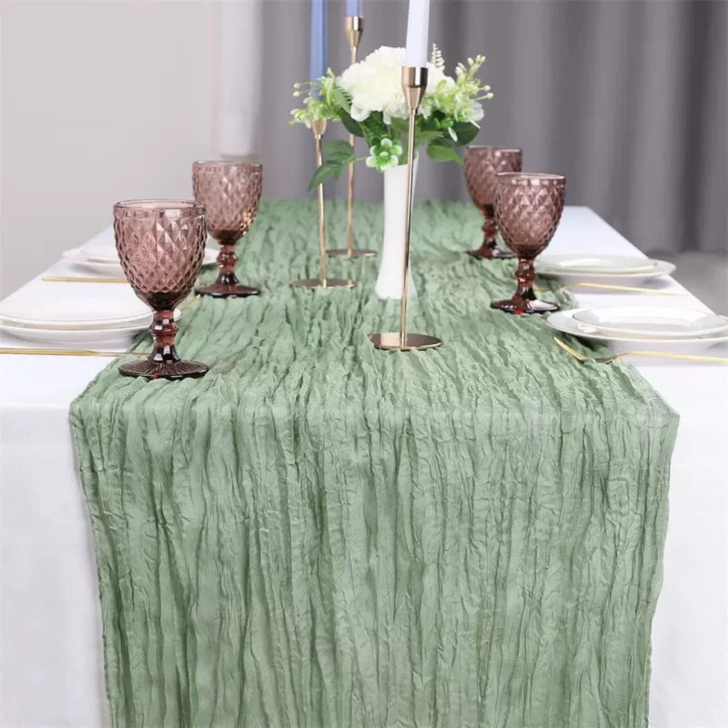 Add a touch of elegance to your table setting with this beautiful sage green crinkle table runner! It's perfect for weddings, parties, or everyday use. The crinkled texture adds a unique and stylish look to any table.