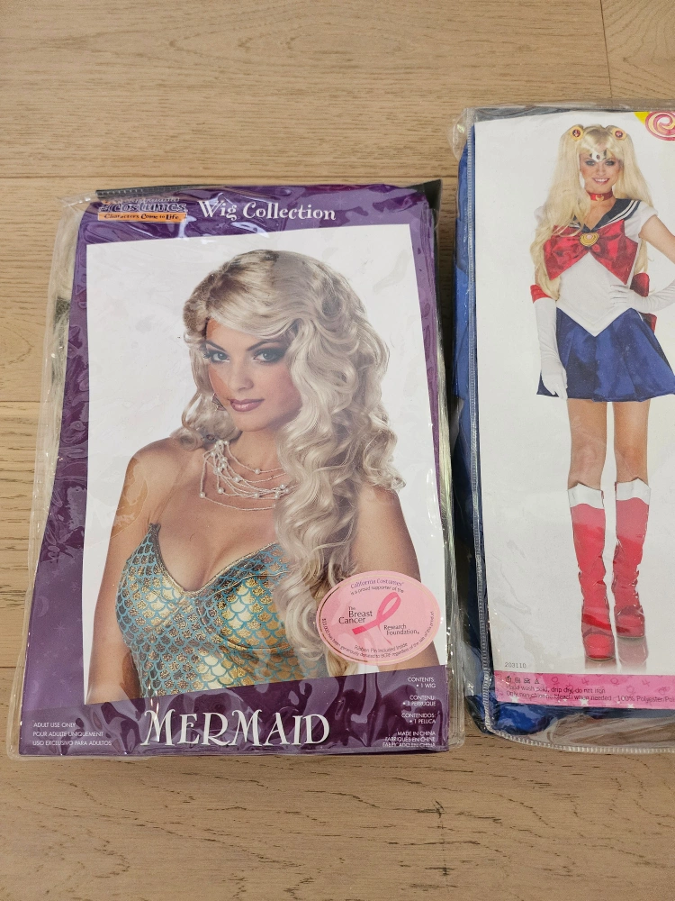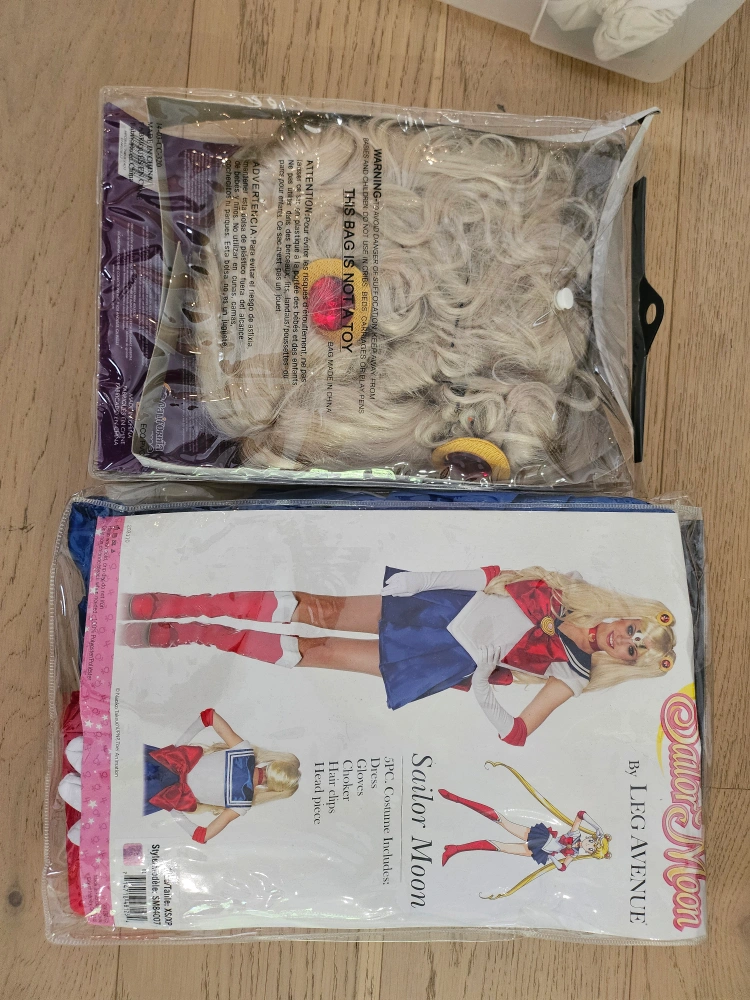 Sailor Moon costume by Leg Avenue. Includes dress, gloves, choker, head piece and hair clips. Perfect for Halloween or cosplay! Throwing in a wig that I had bot and attempted to style to accommodate. costume is XS!! can fit a small. bought this awhile back. but never got to use the costume.