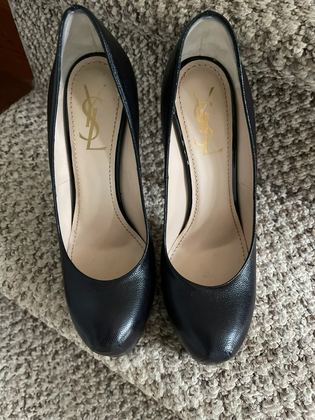 Selling a pair of Saint Laurent platform heels in black leather. They're in good condition, as you can see some wear on the soles. Perfect for a night out! They are authentic!! A tad too big for me. Hence why I’m selling. Leather is in really good condition. They really didn’t get much wear.