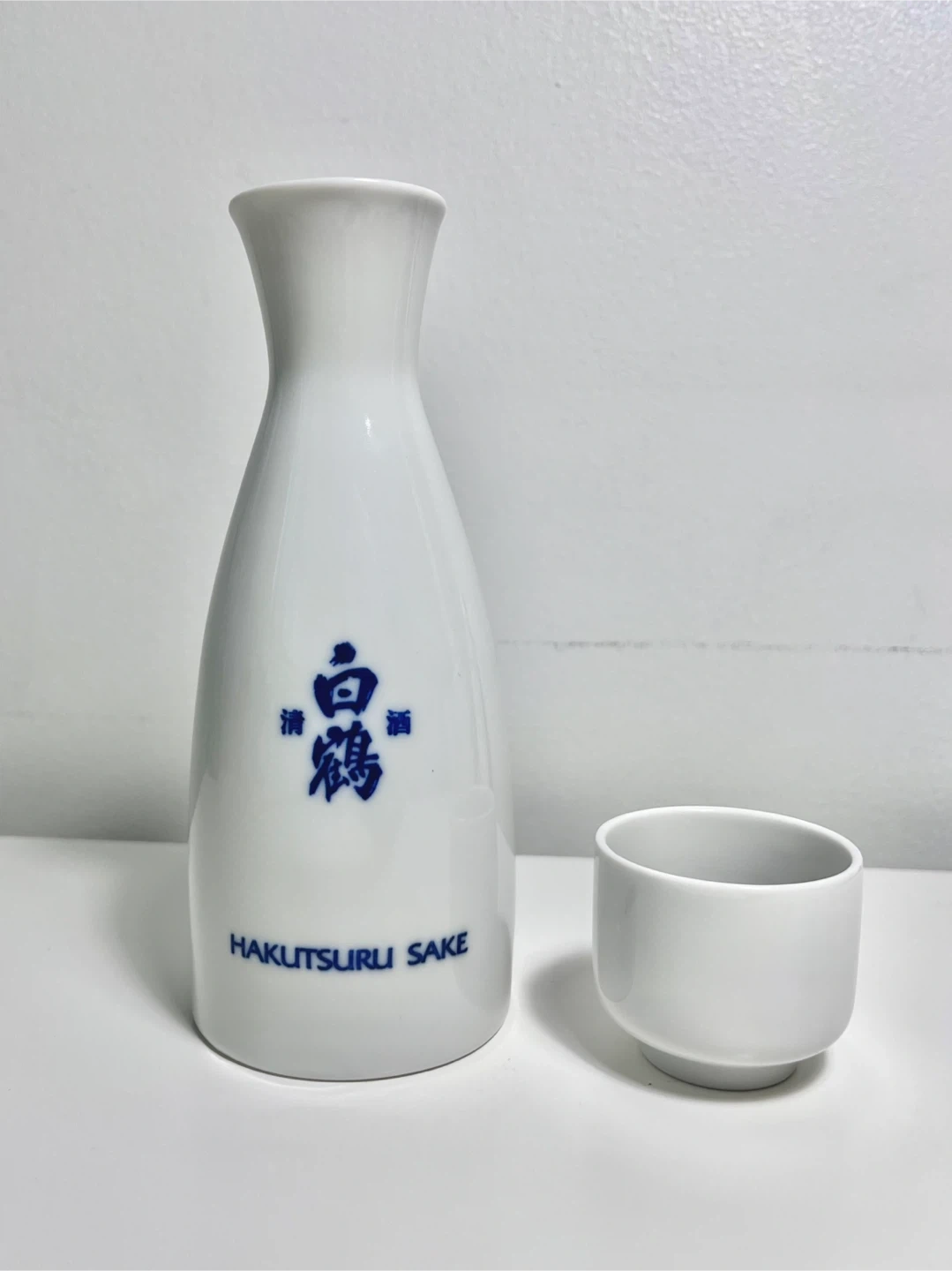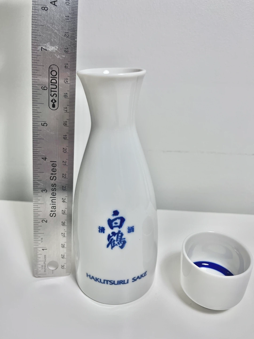 Hakutsuru Sake Bottle with Cup. 📍Mark underneath: Made in Japan 📍Never used (Received as a gift but never used, only stored carefully) 📍Size: Please see picture with measuring tape. 📍Only cash and Pick up 📍 No Return please Check out my other listings😊 (A small discount is available if you buy this along with my other listed items.)