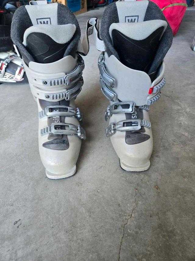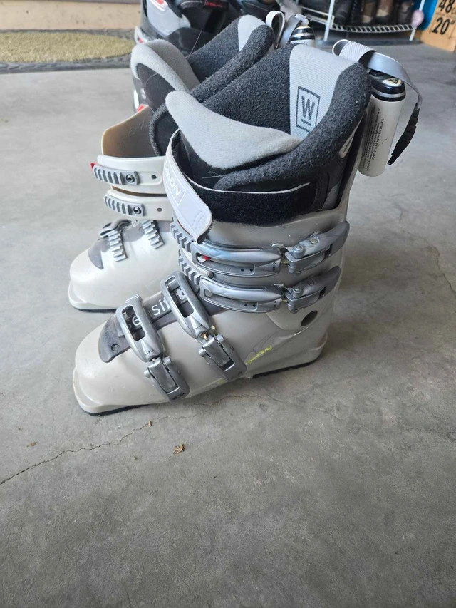 Get ready to hit the slopes with these Salomon ski boots! These boots are used but in good condition and ready for a new owner. They feature a comfortable fit and reliable performance for a great day on the mountain. Here are some details: * Brand: Salomon * Type: Downhill * Condition: Used * rechargeable boot warming insoles with charger * size 26.5?? Looking at similar listings , the average price for used ski boots ranges from $75 to $200. Given the good condition of these boots, I'm pricing them at $50. If the ad is still up, the boots are still available!