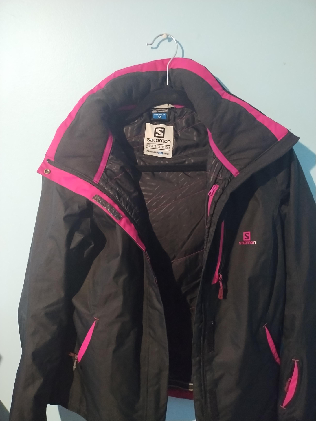 Selling a Salomon winter jacket in size medium. It's black with pink accents. Great for staying warm and stylish during the colder months!