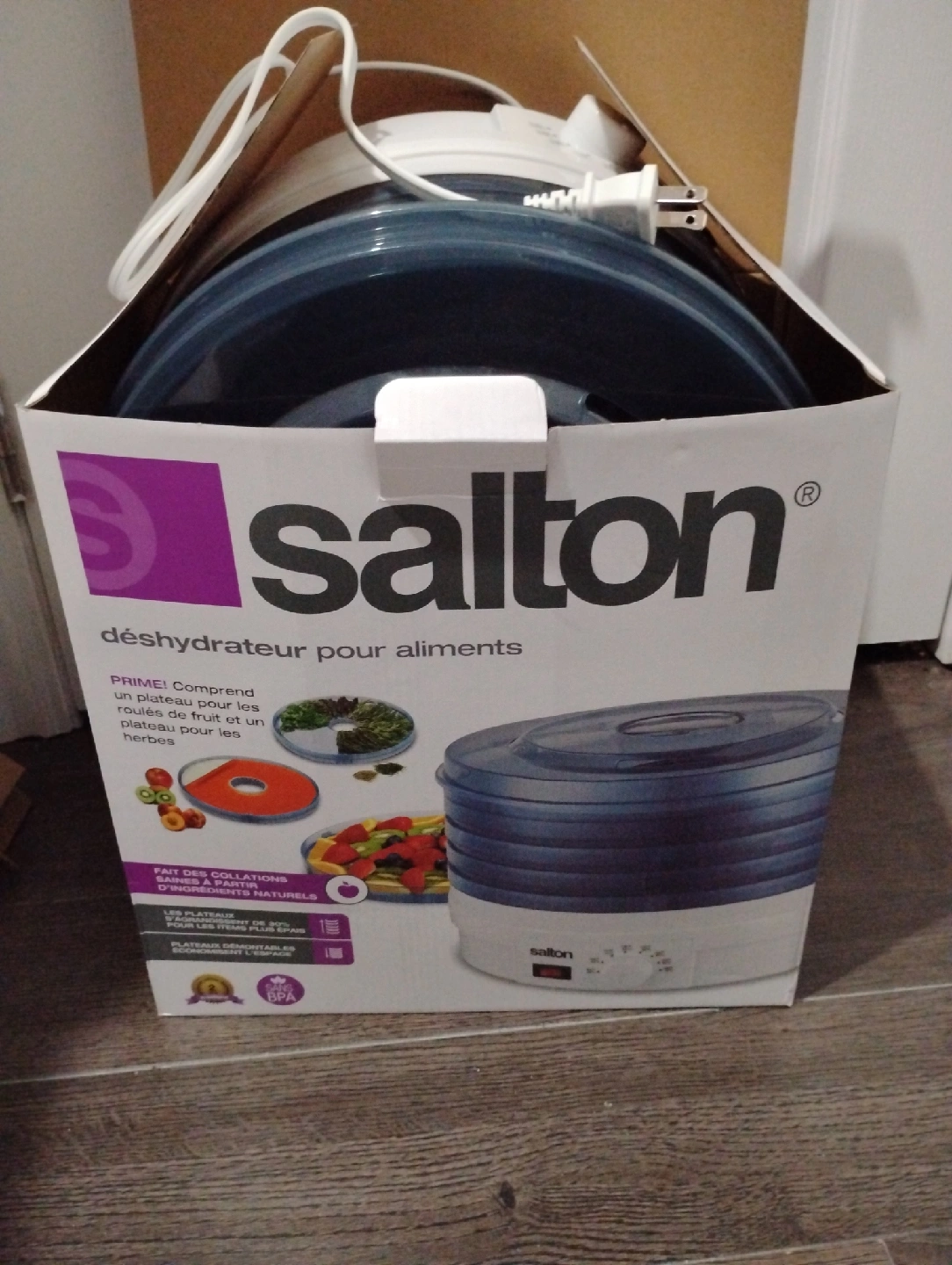 Selling a Salton food dehydrator! It comes with a tray for fruit rolls and a tray for herbs. Perfect for making healthy snacks from natural ingredients. Get ready to make delicious and healthy treats!