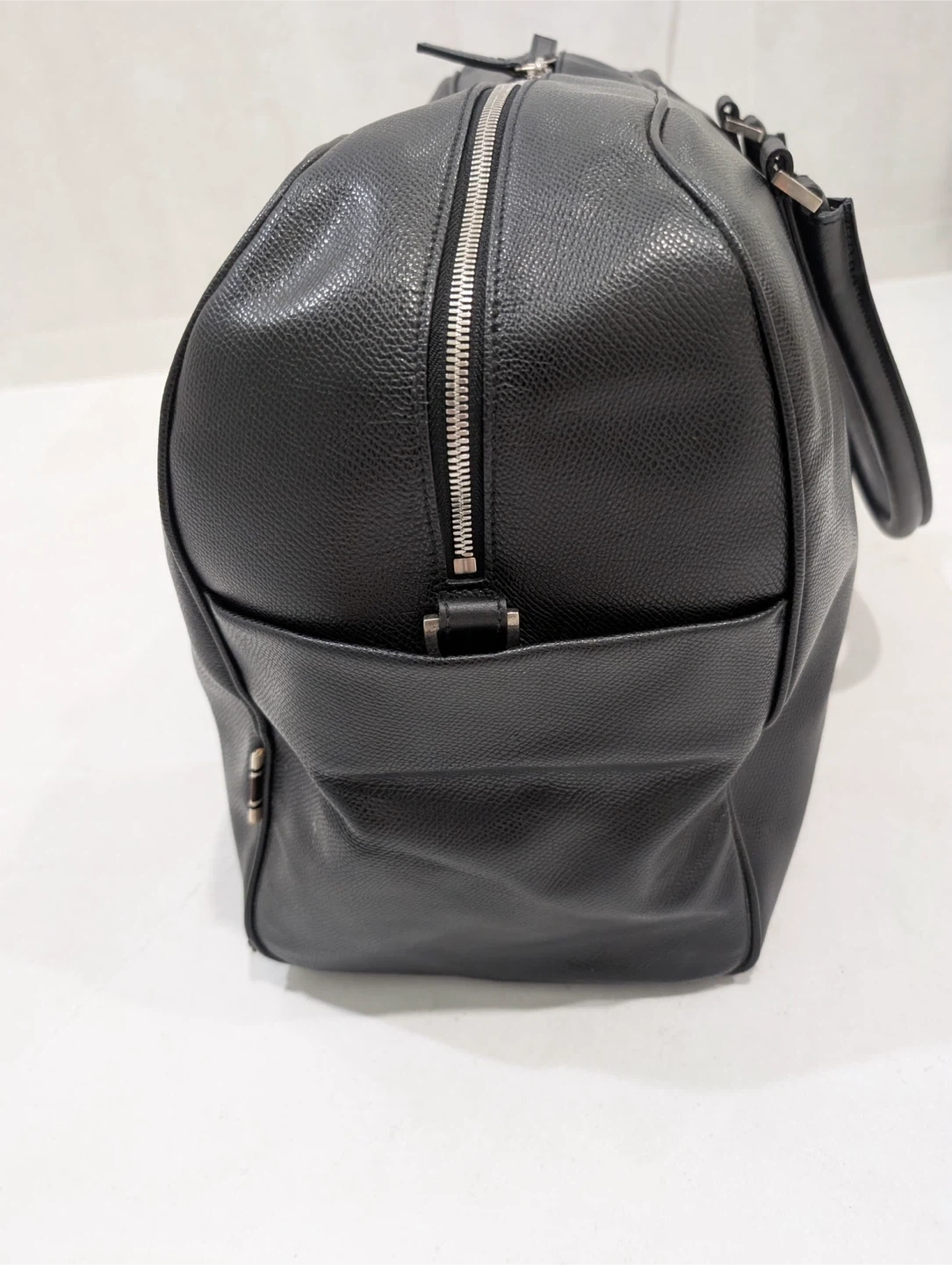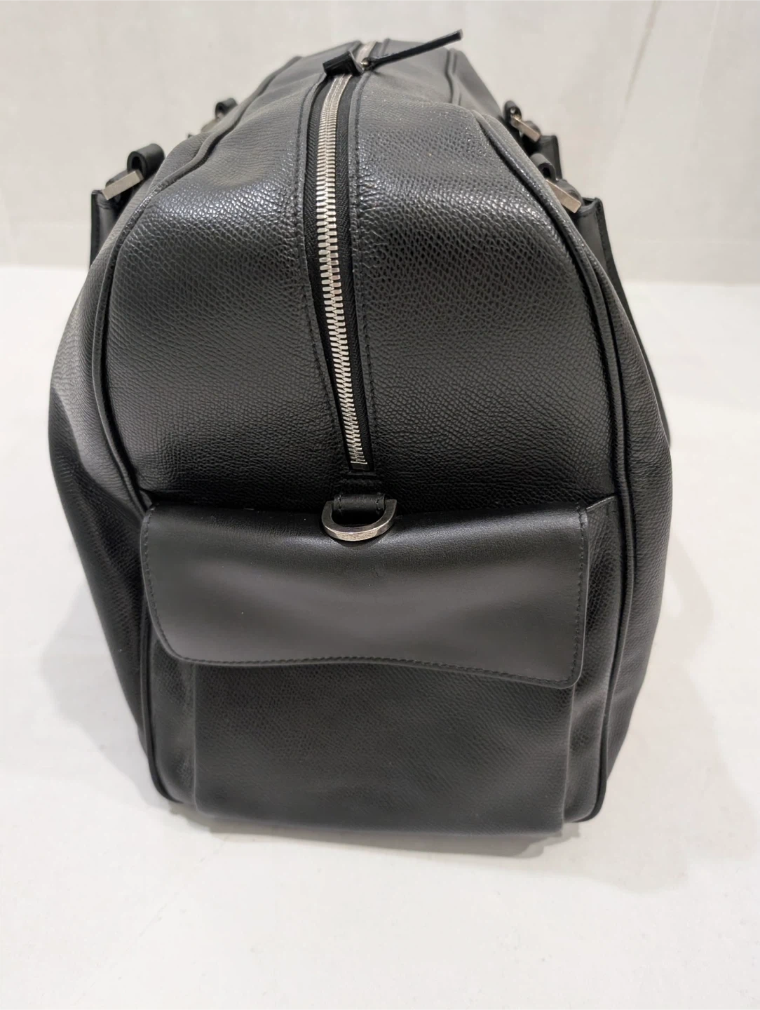 This is a Salvatore Ferragamo black leather duffle bag! It's in great condition and perfect for travel or the gym. The bag features a zipper closure and sturdy handles. The interior is spacious and ready for your essentials
