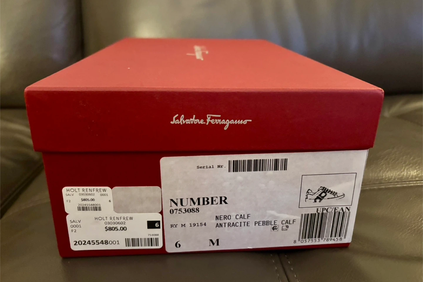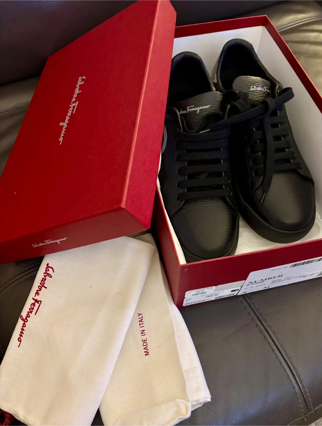 Selling a pair of Salvatore Ferragamo unisex sneakers in black leather. These are size 6 men or size 8 women. They come with the original box and dust bags, never worn. Bought from Holt Renfrew but are too big. Missed the return deadline. Original $804 plus tax, looking for $500 or best offer.