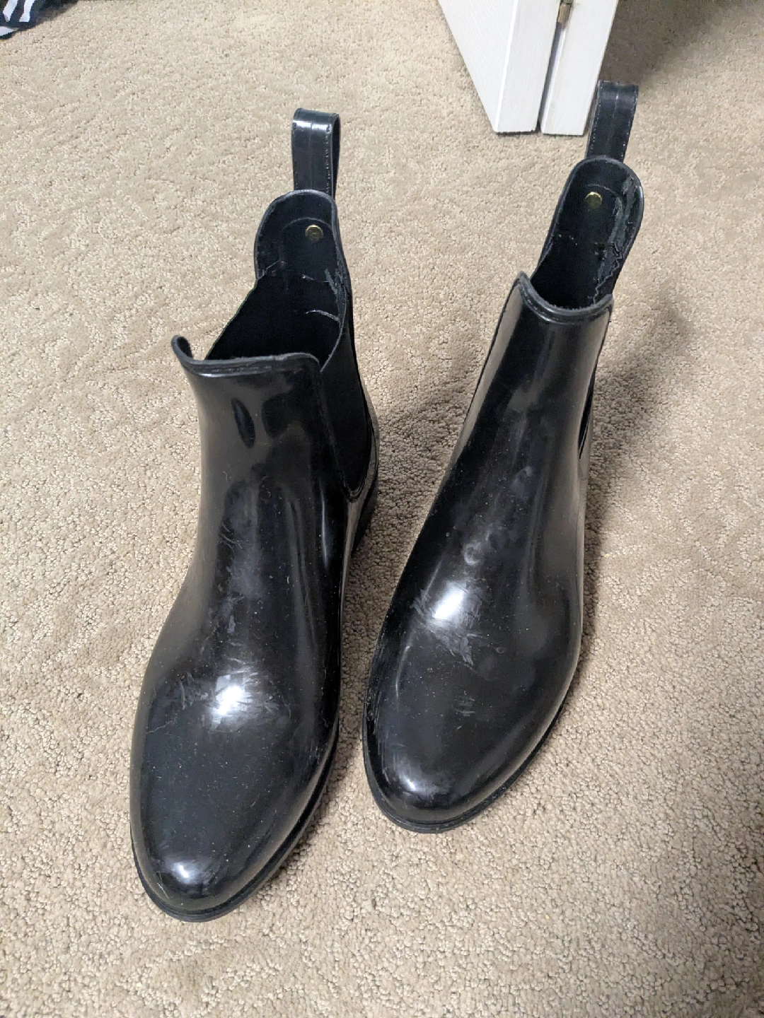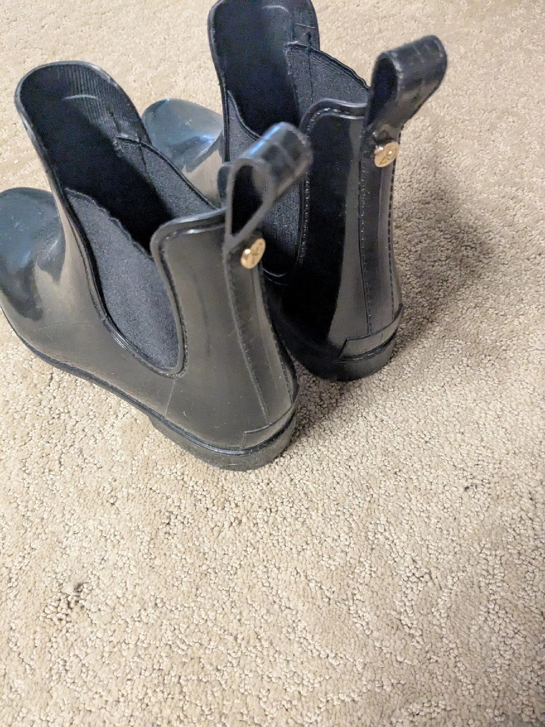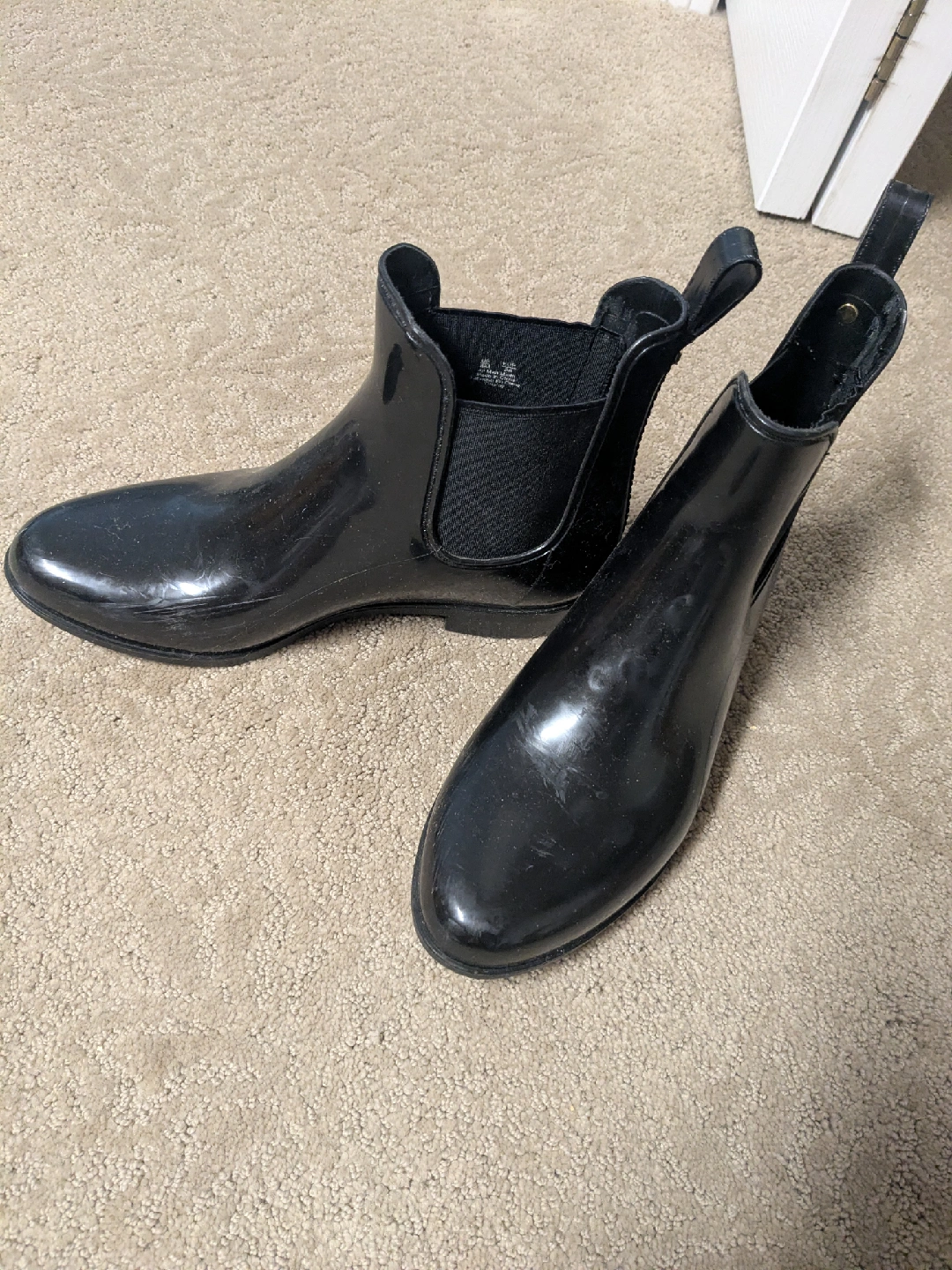 Selling a pair of Sam Edelman rain boots in black. They are a size 8. Great for rainy days!