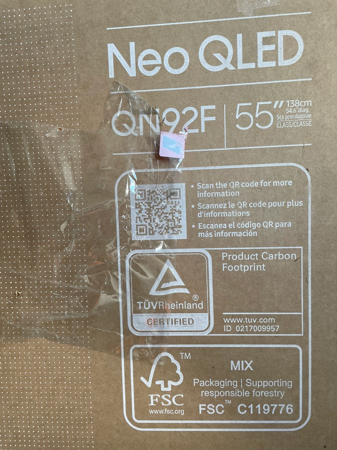 Selling a Samsung 55-inch Neo QLED TV, model QN92F. It's in great condition and comes with the original box. Perfect for upgrading your home entertainment setup!
