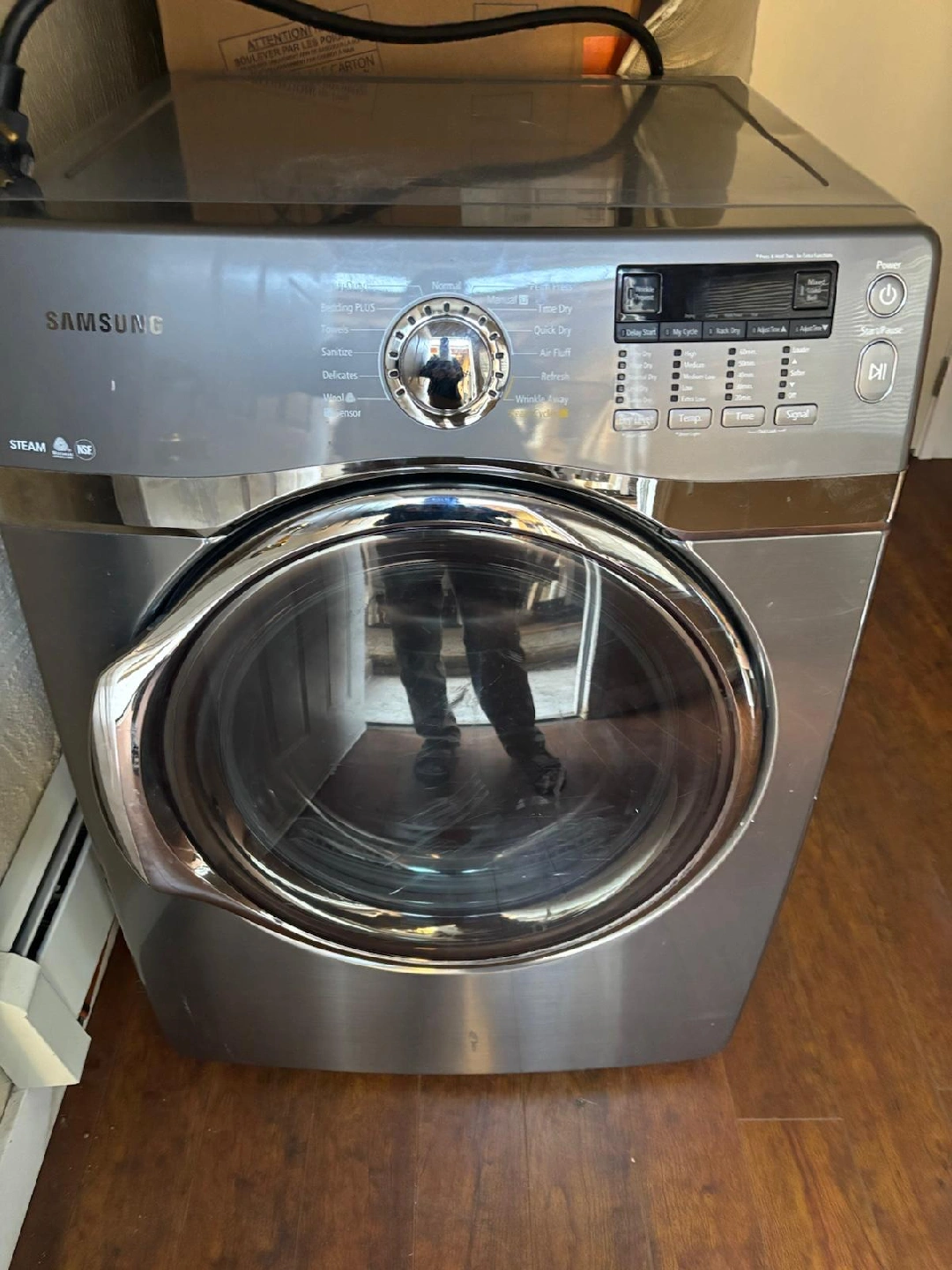 Selling a Samsung front load dryer. There are options for quick dry, air fluff, and wrinkle away cycles. It's in great condition and ready to use!