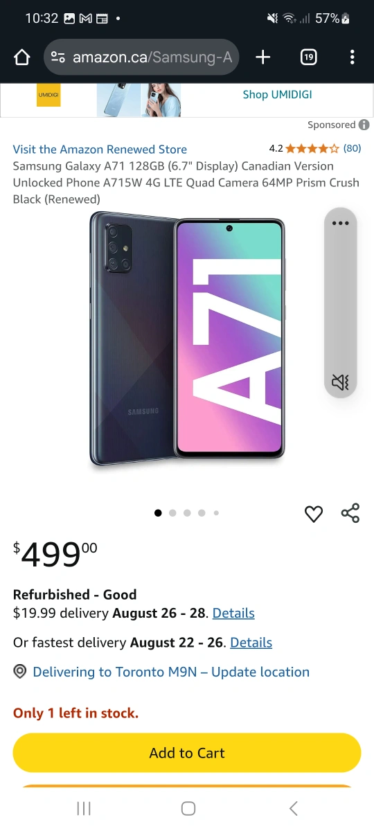 Selling a Samsung Galaxy A71 with 128GB of storage in Prism Crush Black. It's the Canadian version, unlocked and ready to go! It features a 6.7" display and a quad camera with a 64MP main lens. Originally listed for $499 on Amazon asking 250$