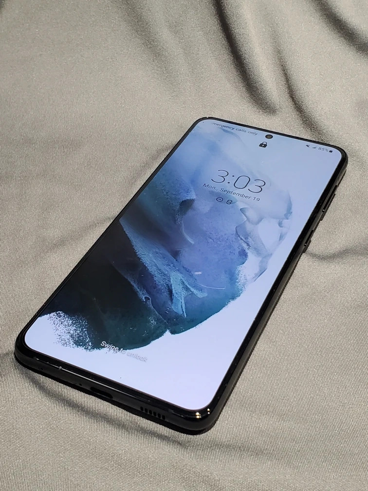 Pre-owned Samsung Galaxy S21+ 5G. Black colour. Minor cosmetic wear. Includes charging port and camera. Unlocked. everything works but i have an iPhone and a Samsung GS25 now so I have no need for this anymore pick up only thanks