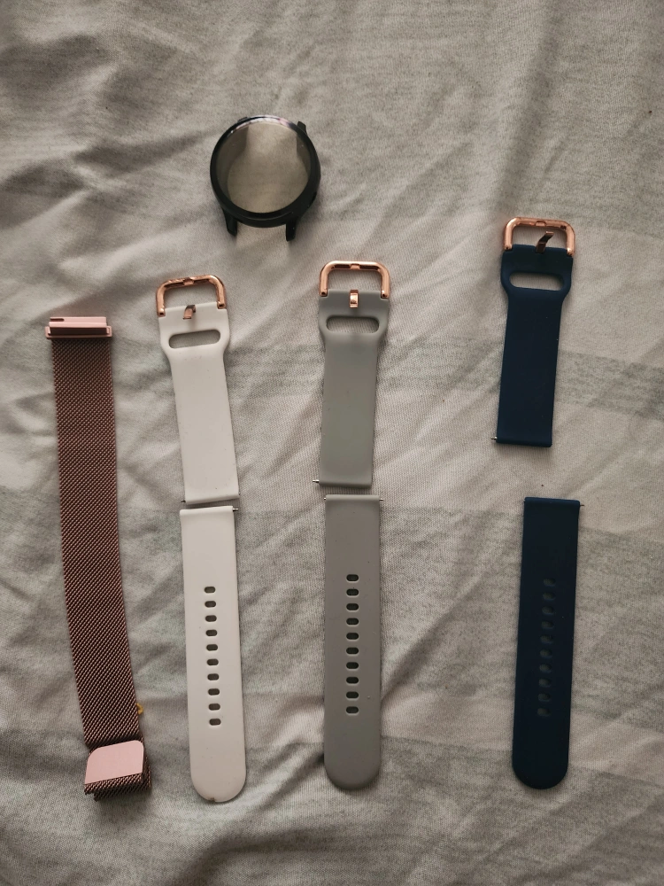 Selling my Samsung Galaxy Watch Active2! It's in great shape and comes with a charger. Also included are a bunch of extra bands in different colours and styles so you can switch up the look whenever you want