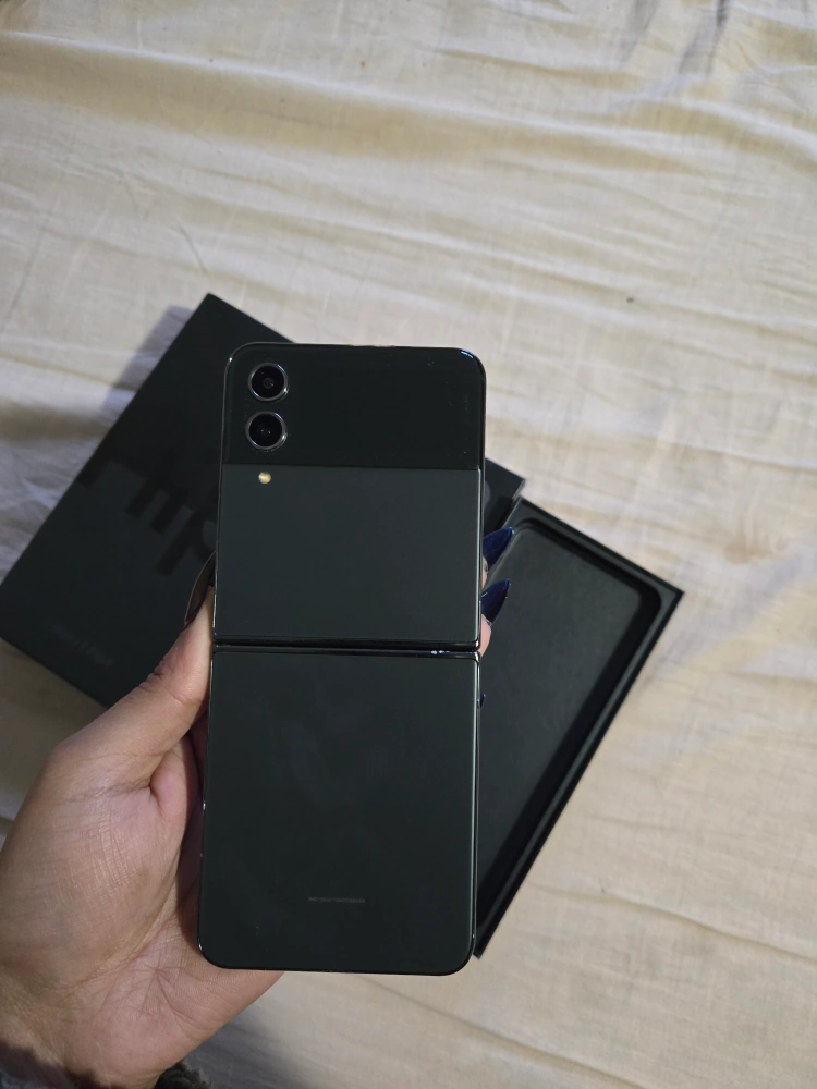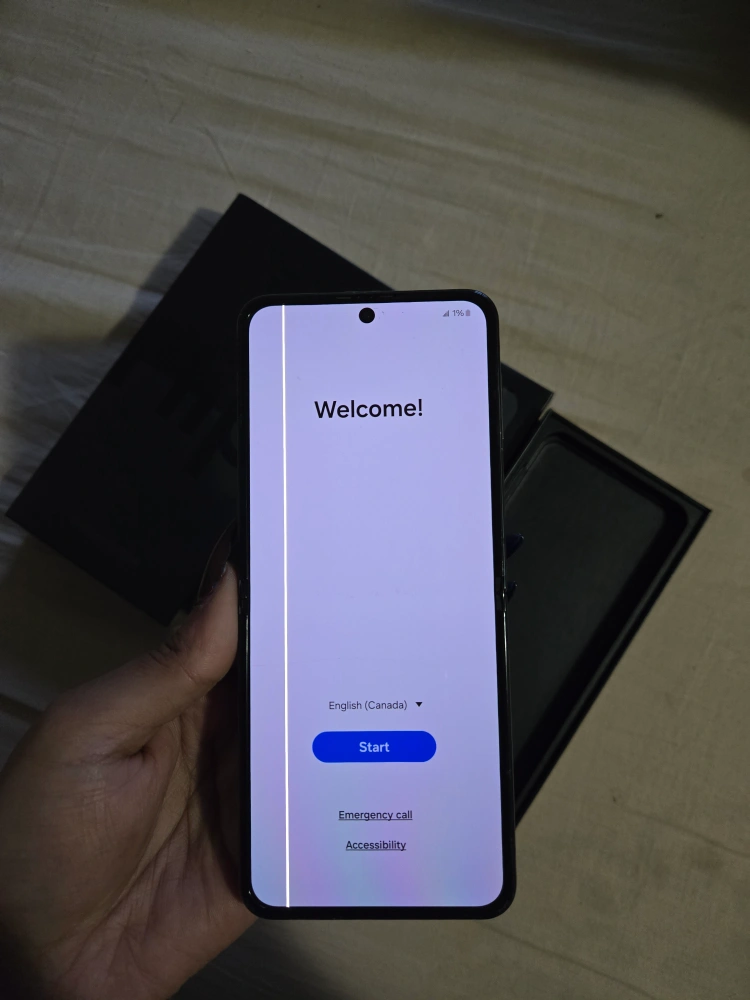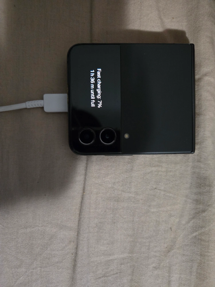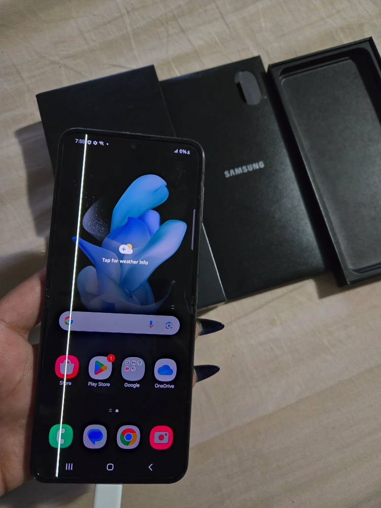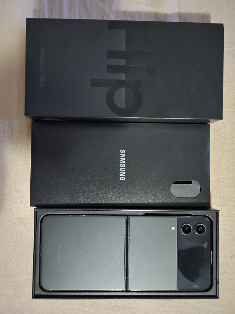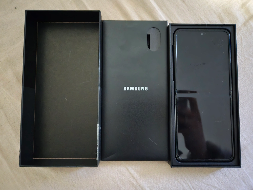 comes with the box. Black colour. as you can see from pictures, there's a line on the main screen. back screen is fine. no other issues at all. easy fix but I've already upgraded to flip 6.