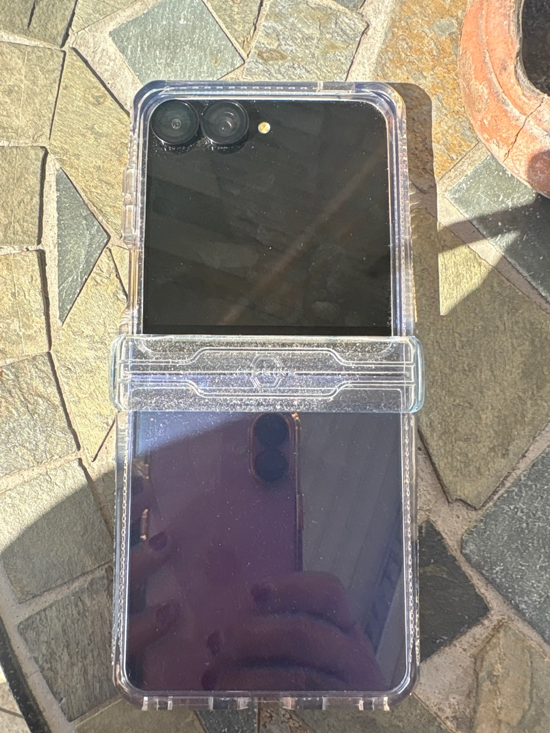 Selling a Samsung Galaxy Z Flip 7 midnight blue purchased 1 week ago. Excellent condition and comes with a $50 clear case to keep it protected. Screen and camera protector included. Comes with box and receipts. Includes warranty. This phone is super compact and fits easily in your pocket. Reg price $1700 plus tax. Selling for $1200 firm. Selling because I prefer iPhone. Feel free to ask any questions!