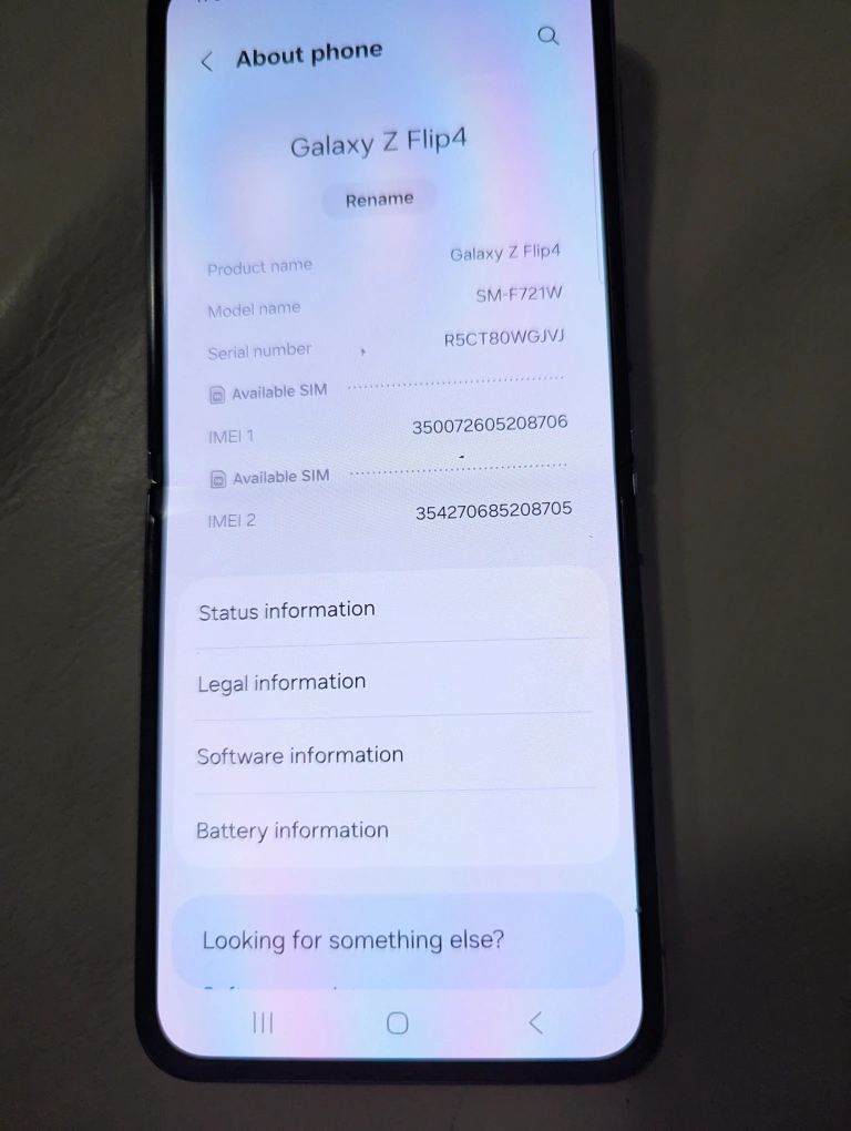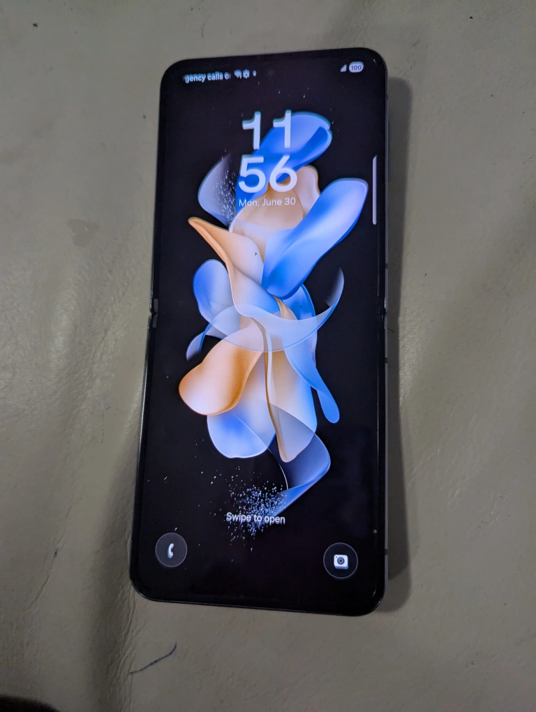 Selling a Samsung Galaxy Z Flip4. It has 128GB of storage. The phone is in good condition and ready for a new owner!