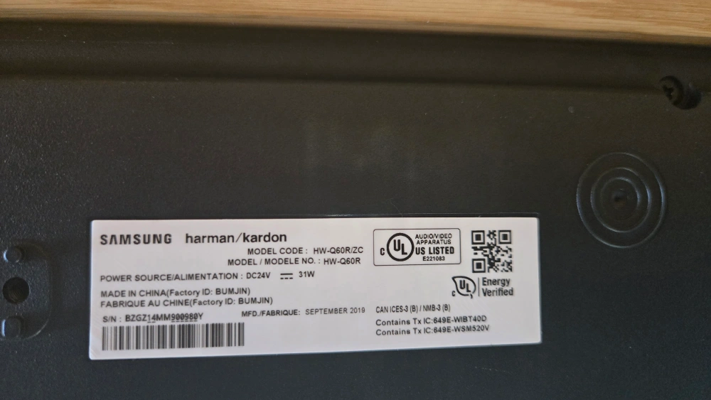 Selling a Samsung Harman/Kardon soundbar, model HW-Q60R/ZC. It's in great shape and ready to enhance your audio experience! It has USB, AUX in, and Digital Audio in (Optical) ports for versatile connectivity. In a great condition.