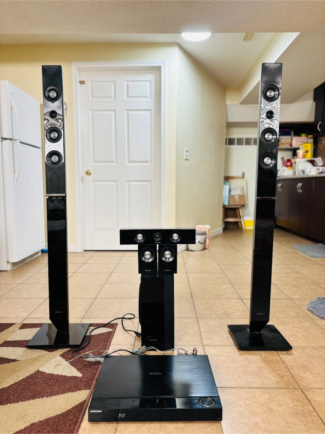 Selling a used Samsung home theatre system. It's in good condition and includes all the speakers and the Blu-ray player shown in the picture. Great for upgrading your home entertainment setup!
