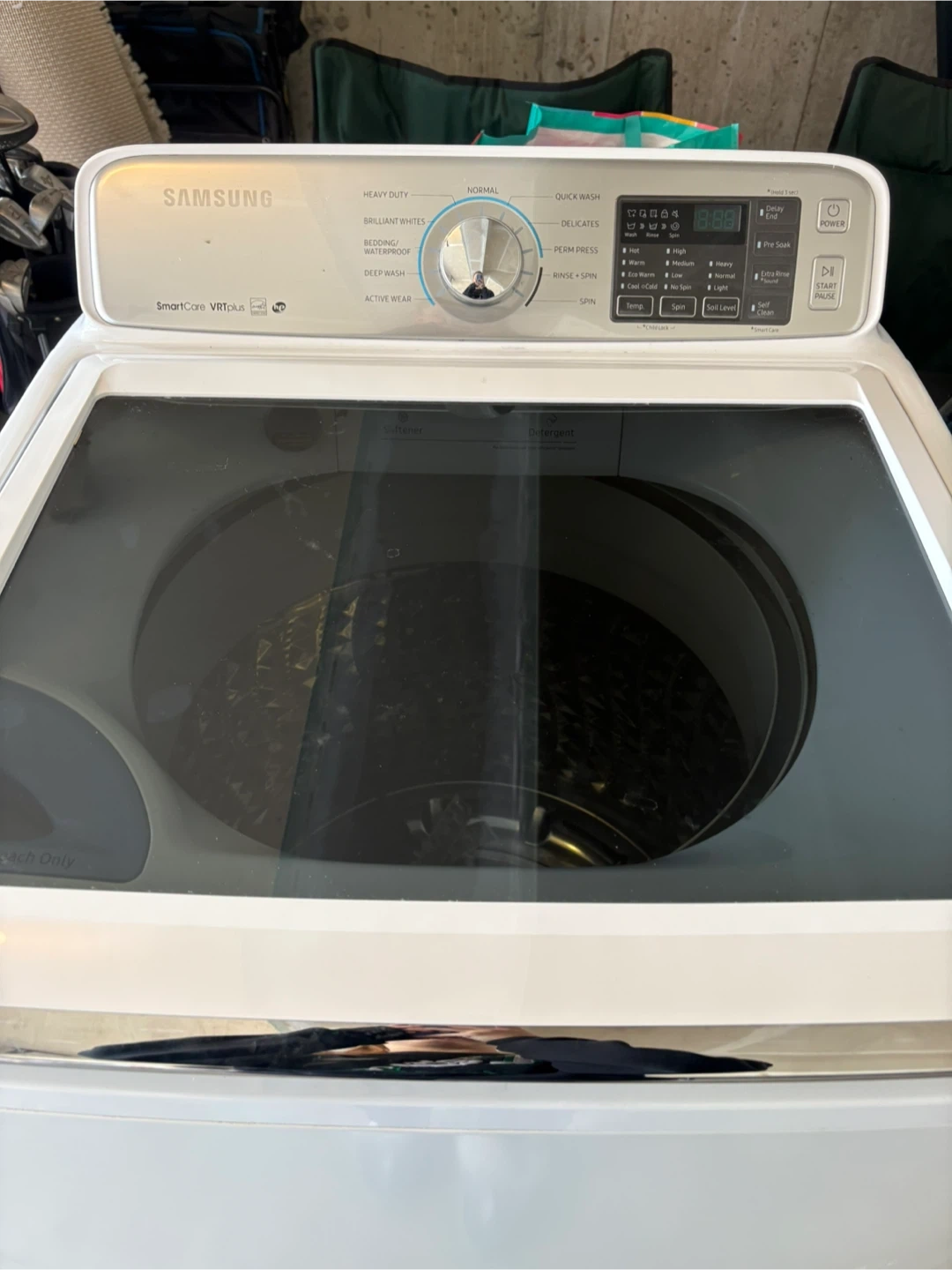 Selling a Samsung SmartCare VRT Plus top load washer. It has various settings including Heavy Duty, Bedding, Perm Press, Delicates, and Towels. Also features a Quick Dry and Steam Sanitize option. Great for any household! $1,200 obo