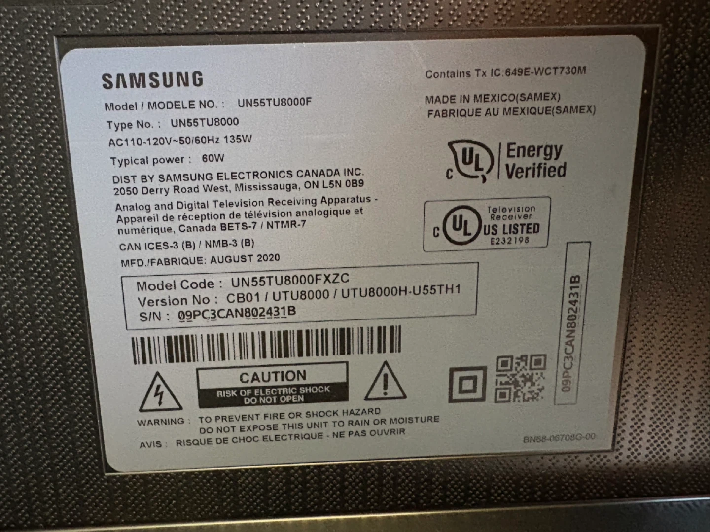 Samsung TV stand legs, compatible with model UN55TU8000F. These are in good condition and ready to support your TV! They are made of PP+GF40% HB material. The TV model # is UN55TU8000.