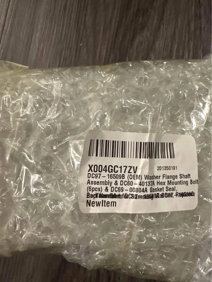 Brand new OEM replacement part for Samsung washing machines. Model: DC97-16509B Includes: ✔ Flange Shaft Assembly ✔ 6x Hex Mounting Bolts (DC60-40137A) ✔ Gasket Seal (DC69-00804A) ✅ 100% OEM – genuine quality ✅ Compatible with multiple Samsung washer models ✅ New in package Perfect for washer repair / replacement.
