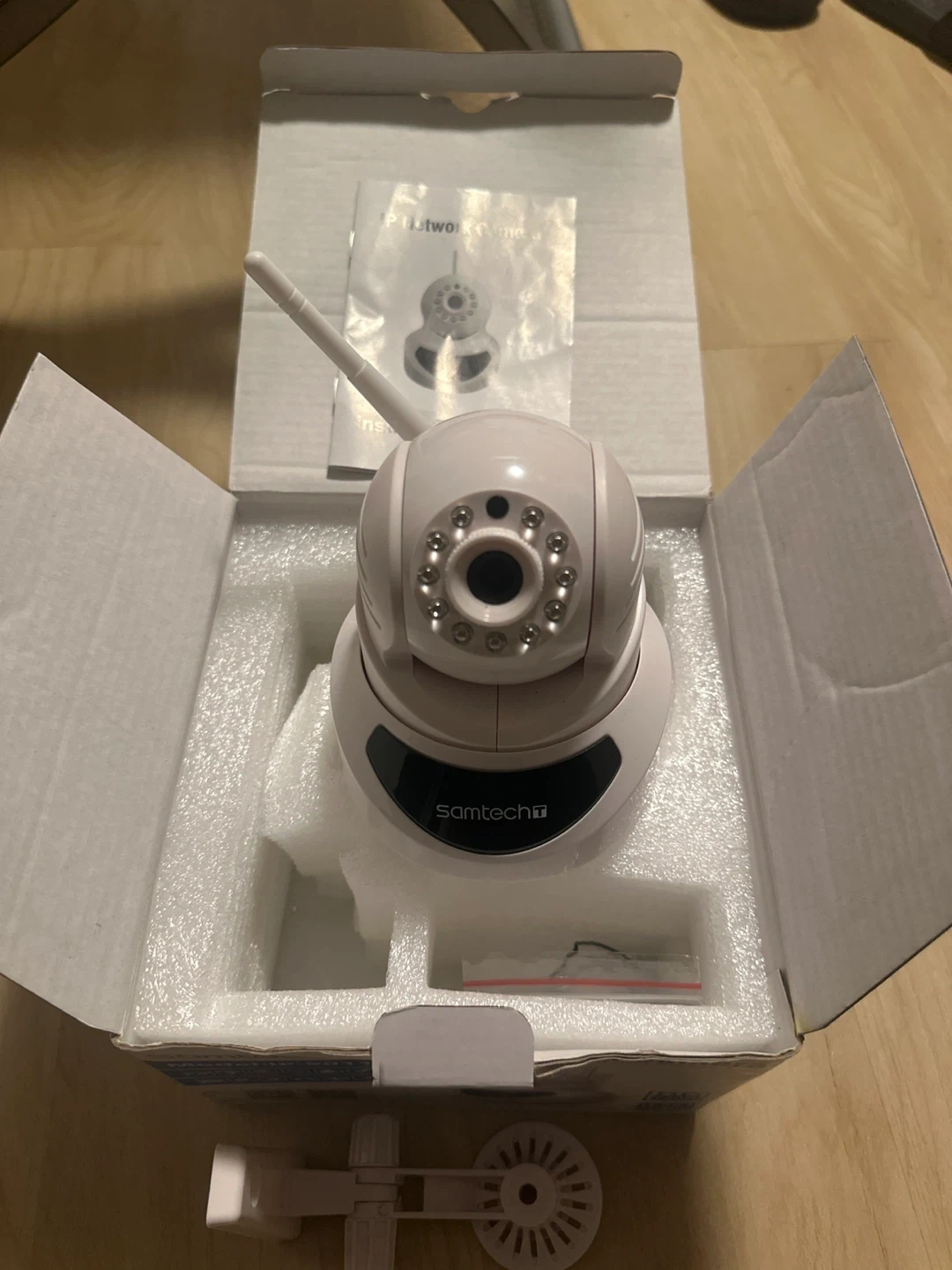 Selling a brand new Samtech IP Network Camera, model IP-9011. It's in its original box and has never been used! Easy management and secure live feed. Includes all original components and instructions